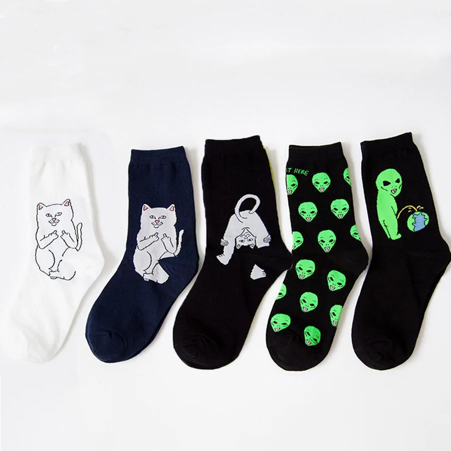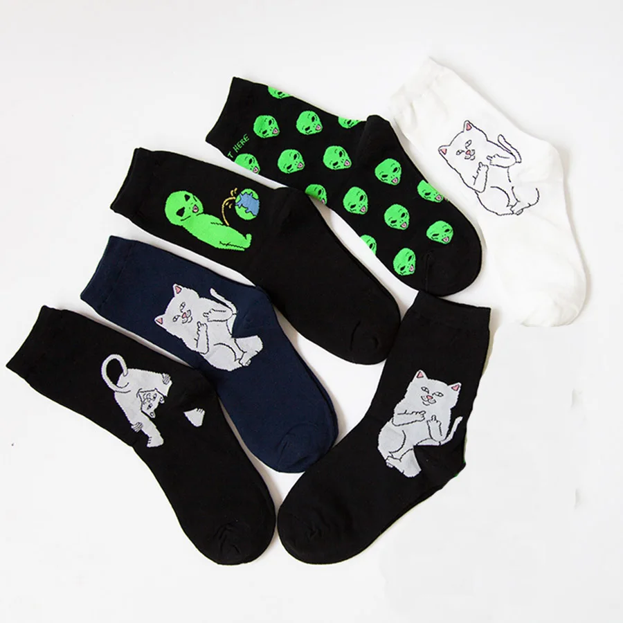 Носки унисекс хлопковые, с рисунком кошки, инопланетянина, 1 пара