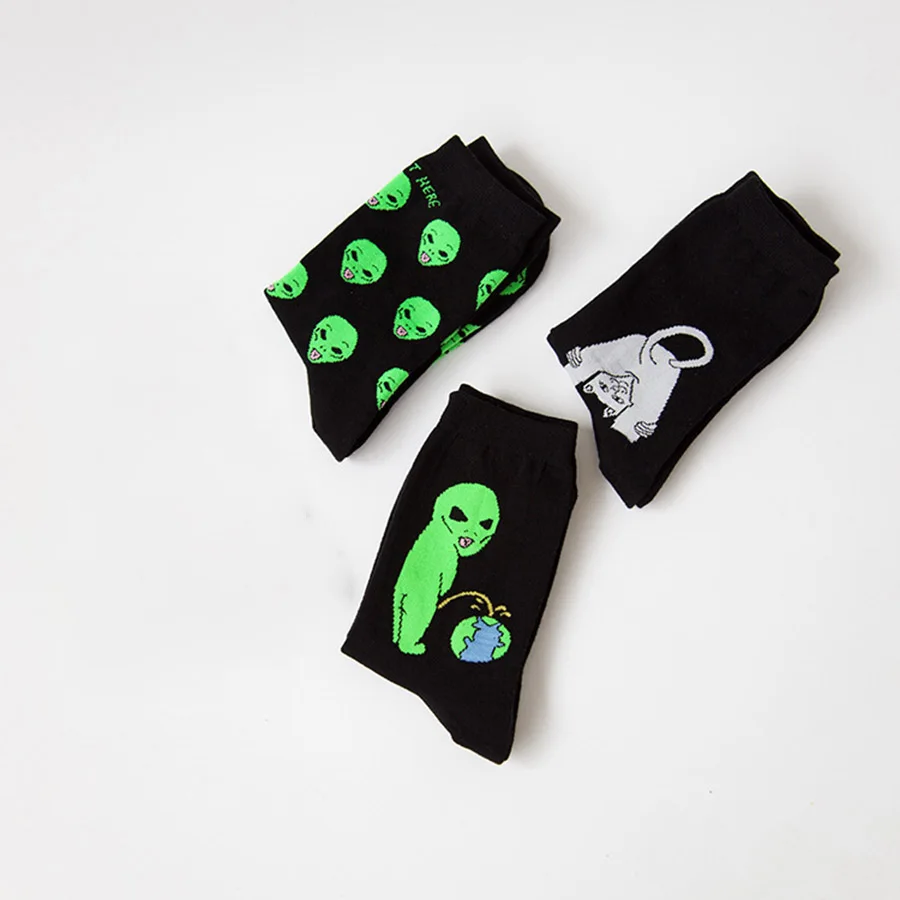 Носки мужские, длинные, дышащие, с забавными рисунками, инопланетян...