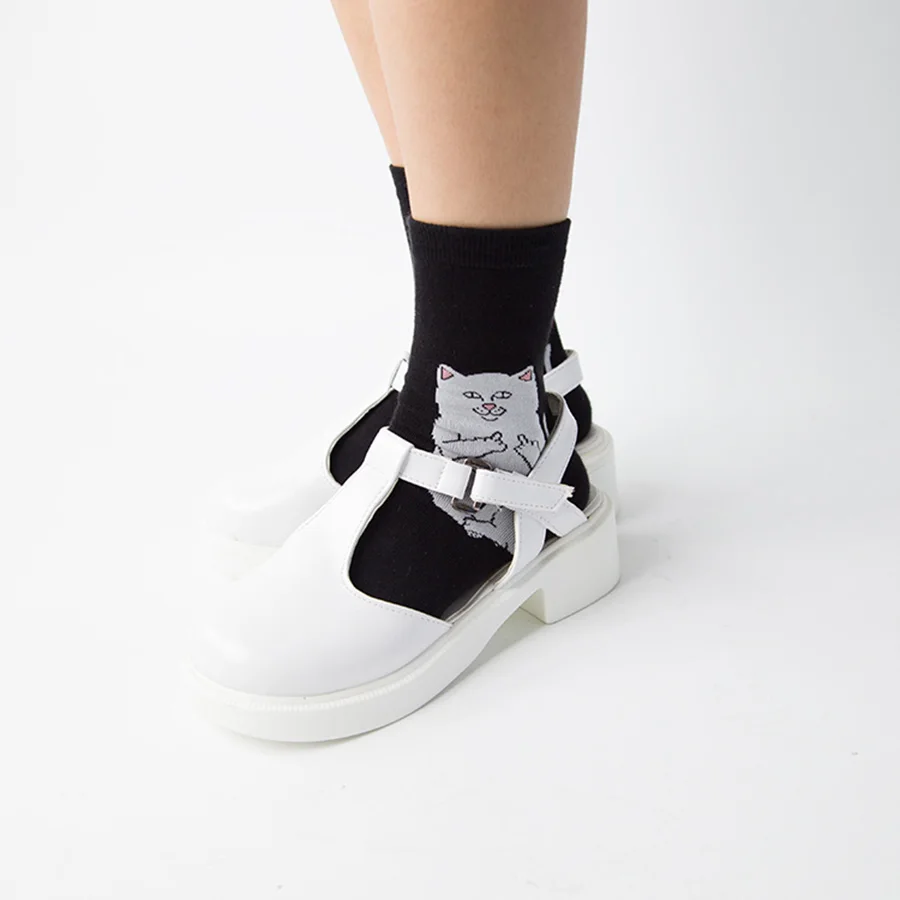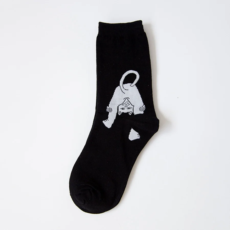 Черный, белый цвет иностранцев кошка забавные Женские носочки милые жаккардовые Kawaii Носки, Calcetines Mujer смешной счастливый Divertidos Skarpetki Экипаж Sokken