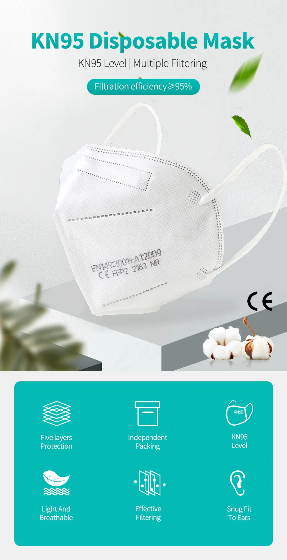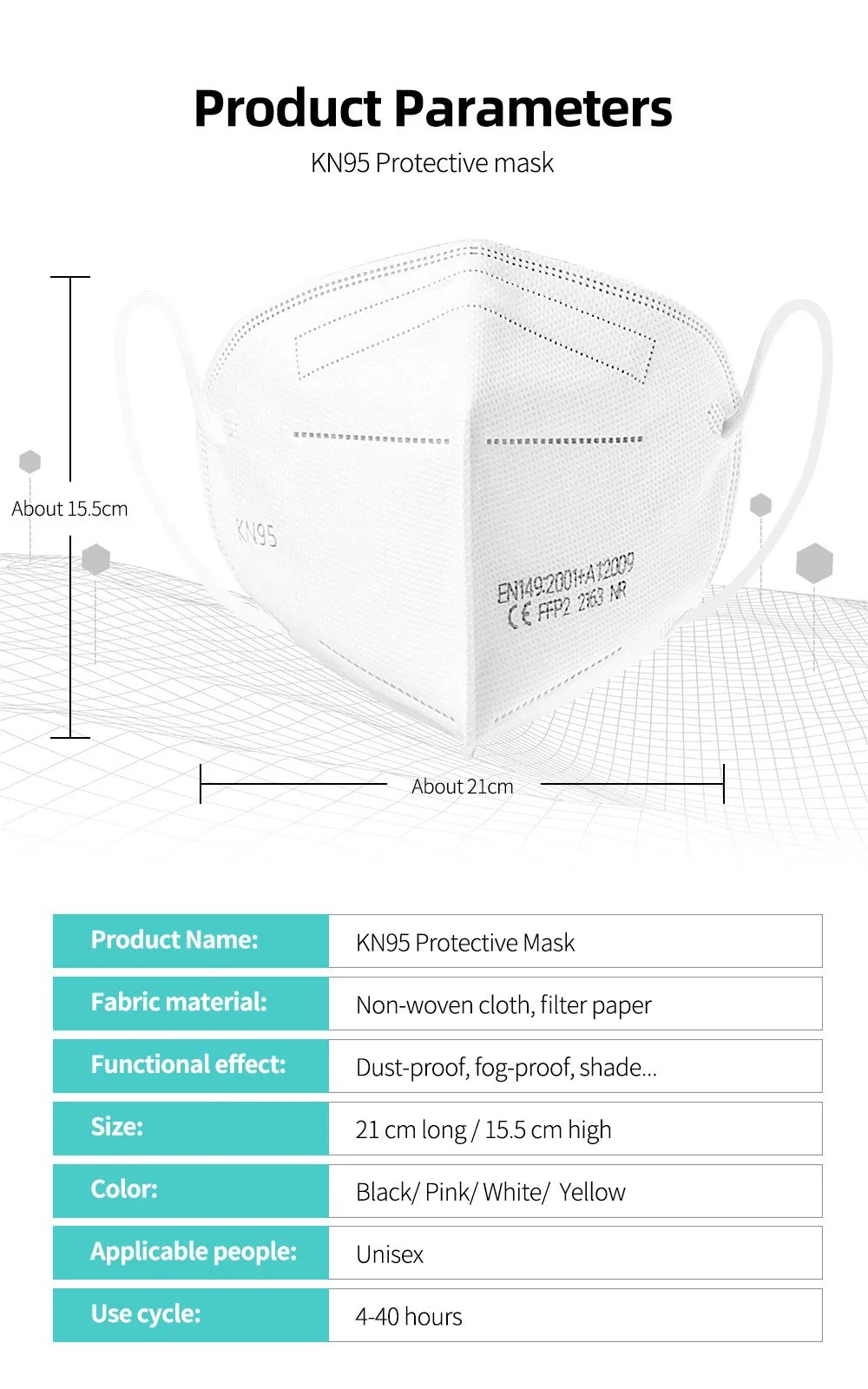 Feature 4Reusable Kn95 fpp2 Mask CE
