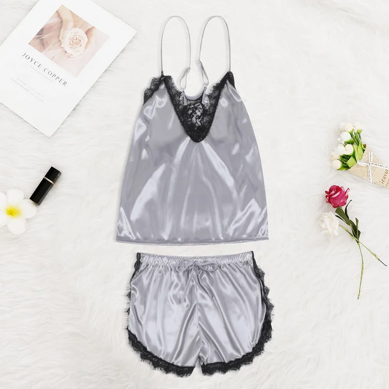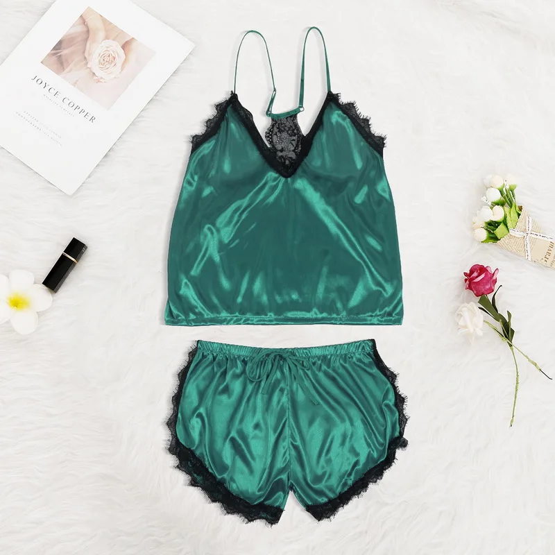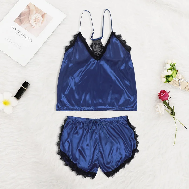 Комплект пижамный женский кружевной на бретелях-спагетти, комплект из 2 предметов, повседневная одежда для сна с V-образным вырезом и шорты