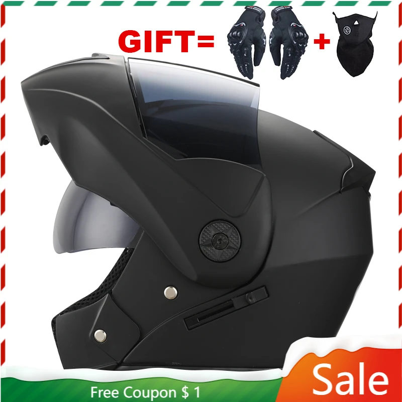Подарки = перчатки + маска, Новый мотоциклетный шлем с двойными лин...