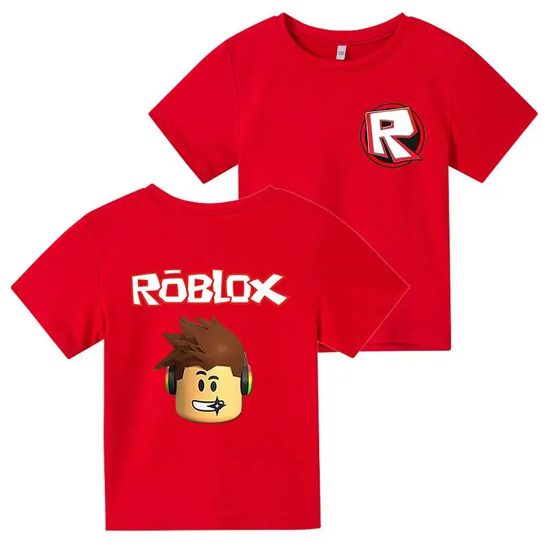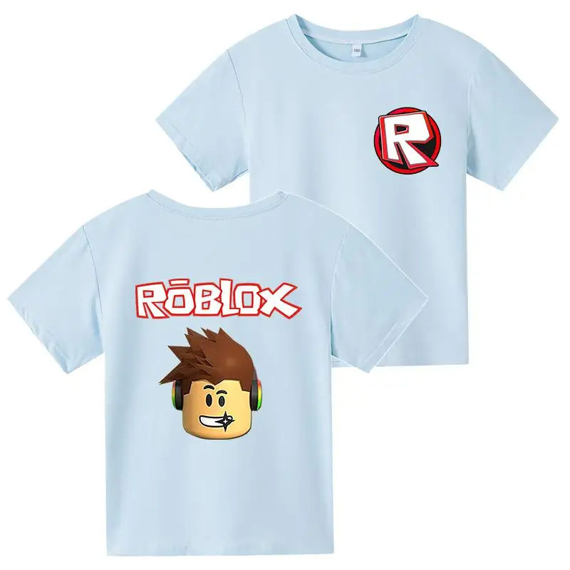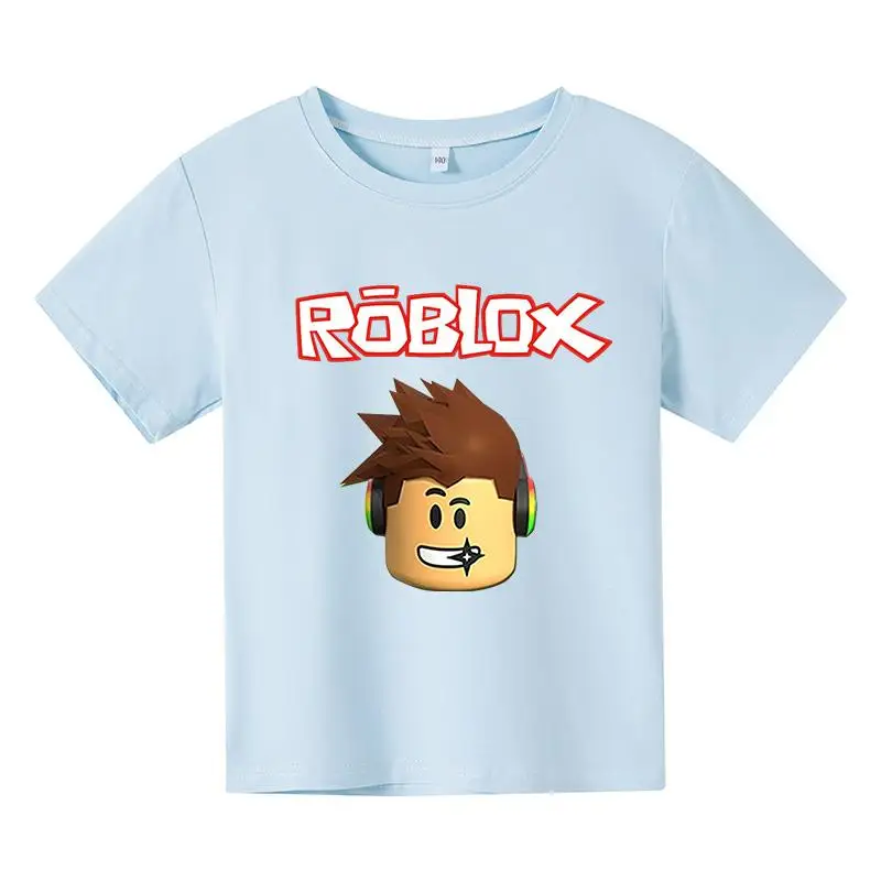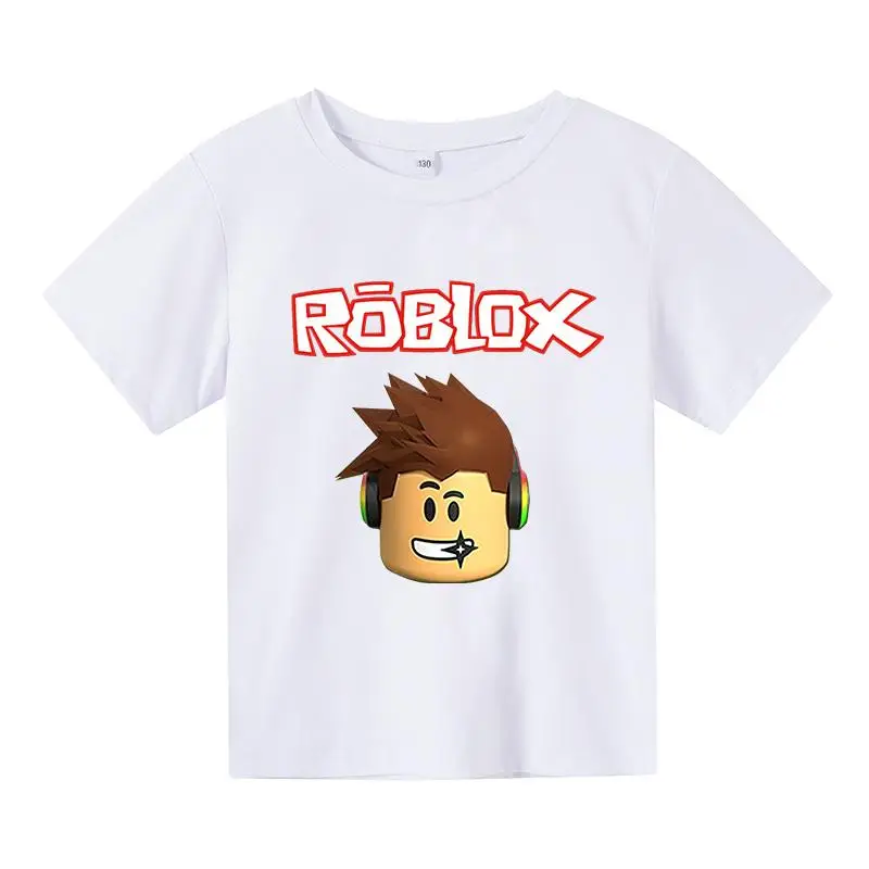 С коротким рукавом и принтом в виде героев мультиков для детей футболки 2021 летняя детская одежда для девочек, подростковые Топы Детская одежда От 3 до 14 лет Одежда для мальчиков; Забавная Robloxing игры Футболка