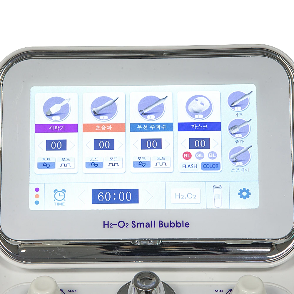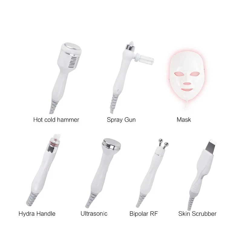 1-маленькая пузырчатая ручкаУлучшает морщины, тонус, сужает поры, темную кожу, желтоватый цвет, угри, глубокое очищение, тонизирование, повышает эластичность кожи, блеск, нежность кожи и т. Д.2-ультразвукЧерез 1 миллион до 3 миллионов вибраций, эссенция проникает глубоко в кожу, мягко массирует клетки, способствует метаболизму, повышает жизнестойкость клеток, улучшает кровообращение и лимфатию.3; Приятные для кожи скруббер чистки вибрацииОтбеливание, омертвевшая кожа, удаление черных точек,4- RFRF подъемная головка: стимулирует коллаген, подтягивает и подтягивает кожу.5-холодный молотокСужает поры, подтягивает кожу, удаляет морщины, способствует гиперплазии коллагена, устраняет покраснения и чувствительность, И тускнеет темные круги и мешки под глазами.6-водородный кислорода (H2O2) пистолет-распылительСочетая с эссенцией, прибор производит окси-водород, который может быть быстро проникает в дерму через инъекцию высокого давления.7-маскаВ зависимости от различных цветов затягивания, осветления меланина, восстановления кожи, пролиферации коллагена, баланса жира, омоложения кожи, сокращения proe.