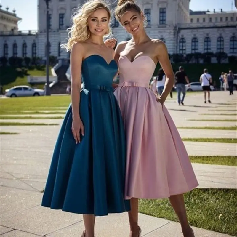 ТРАПЕЦИЕВИДНОЕ атласное платье принцессы с бантом без рукавов длиной до середины икры платье для выпускного вечера коктейльные платья