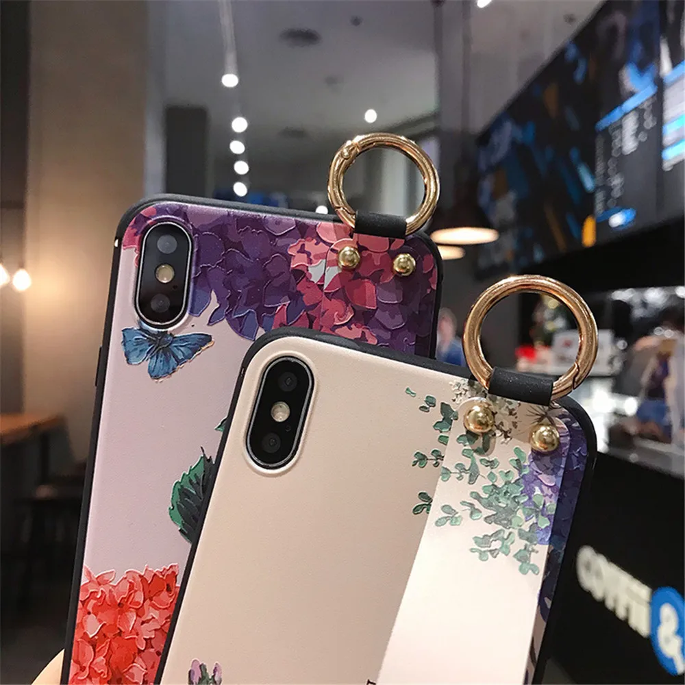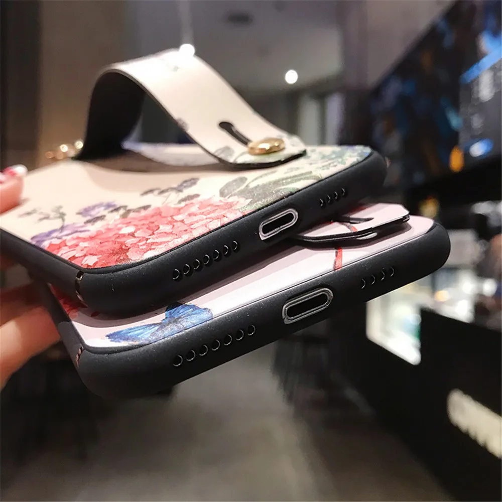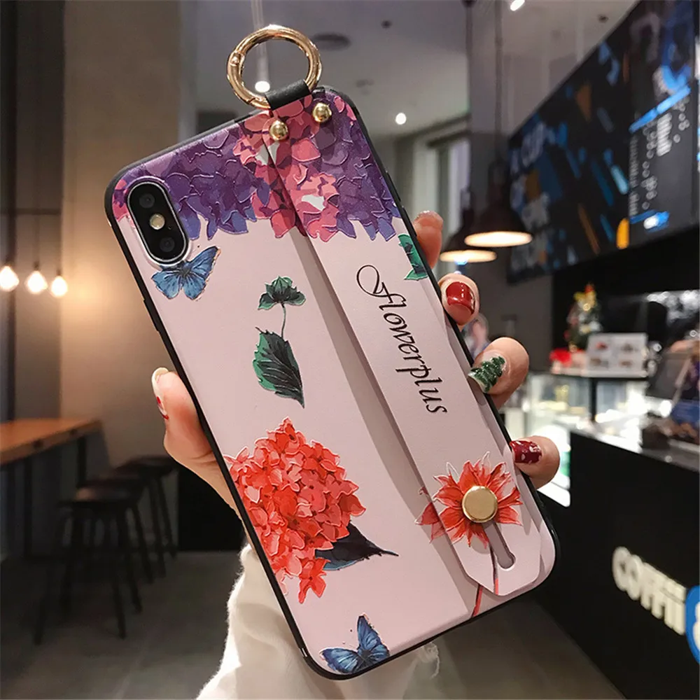 Роскошный 3D чехол с ремешком на запястье с тисненым фиолетовым цветком и листьями для Xiaomi Mi 10 Ultra POCO X3 NFC Redmi Note 8 9 Pro Max 9S, чехол