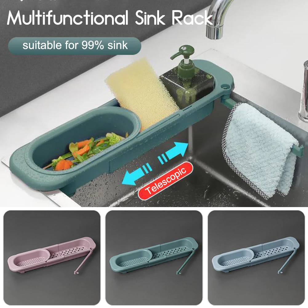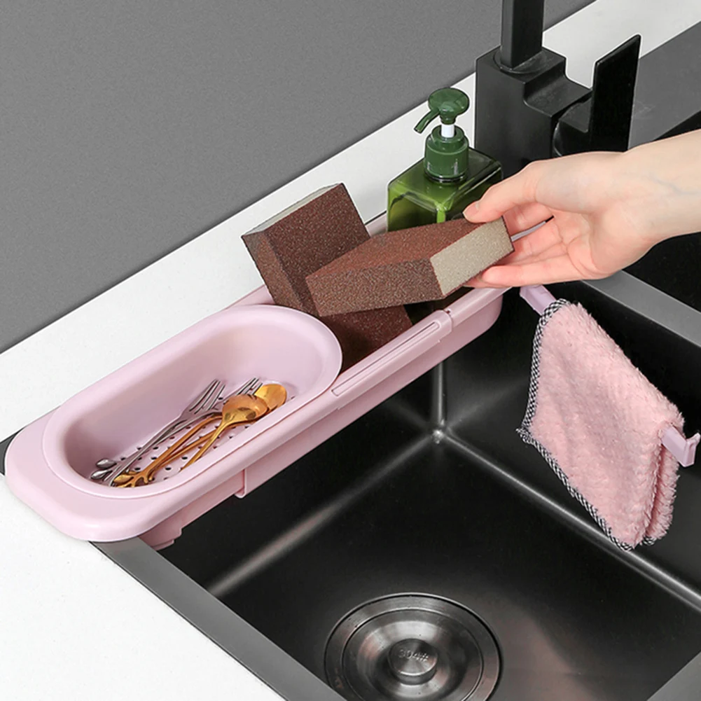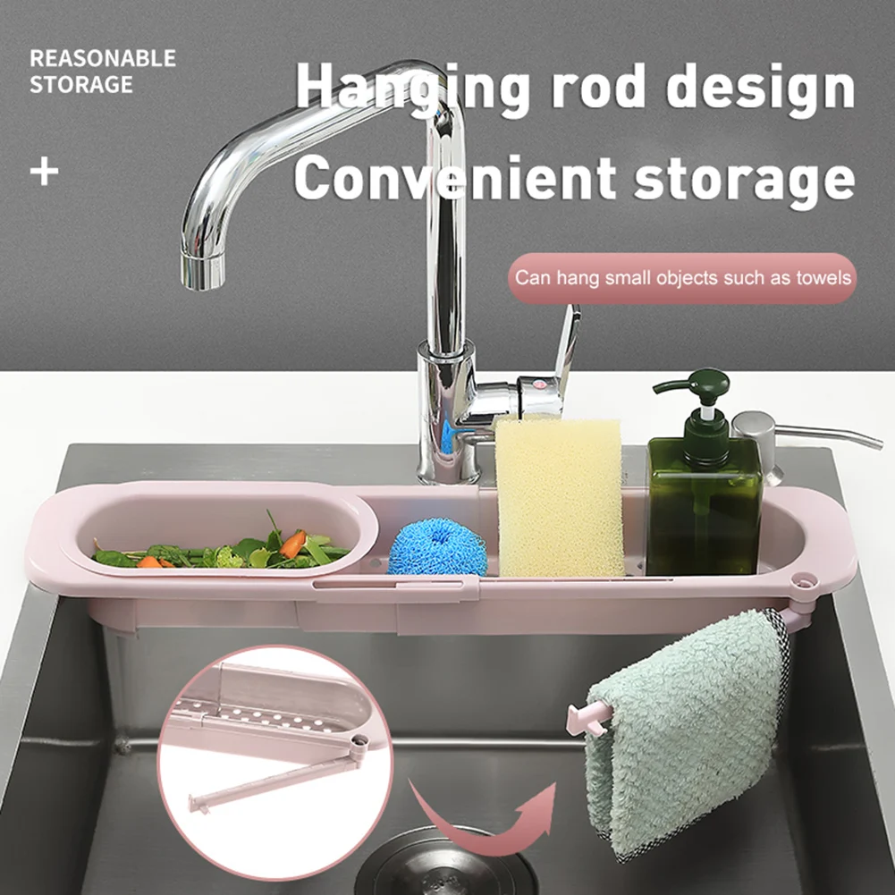 Телескопическая стойка для раковины, расширяемый органайзер для кухонной раковины с вешалкой для полотенец, держатель для сливной ванны, губки для организации кухни