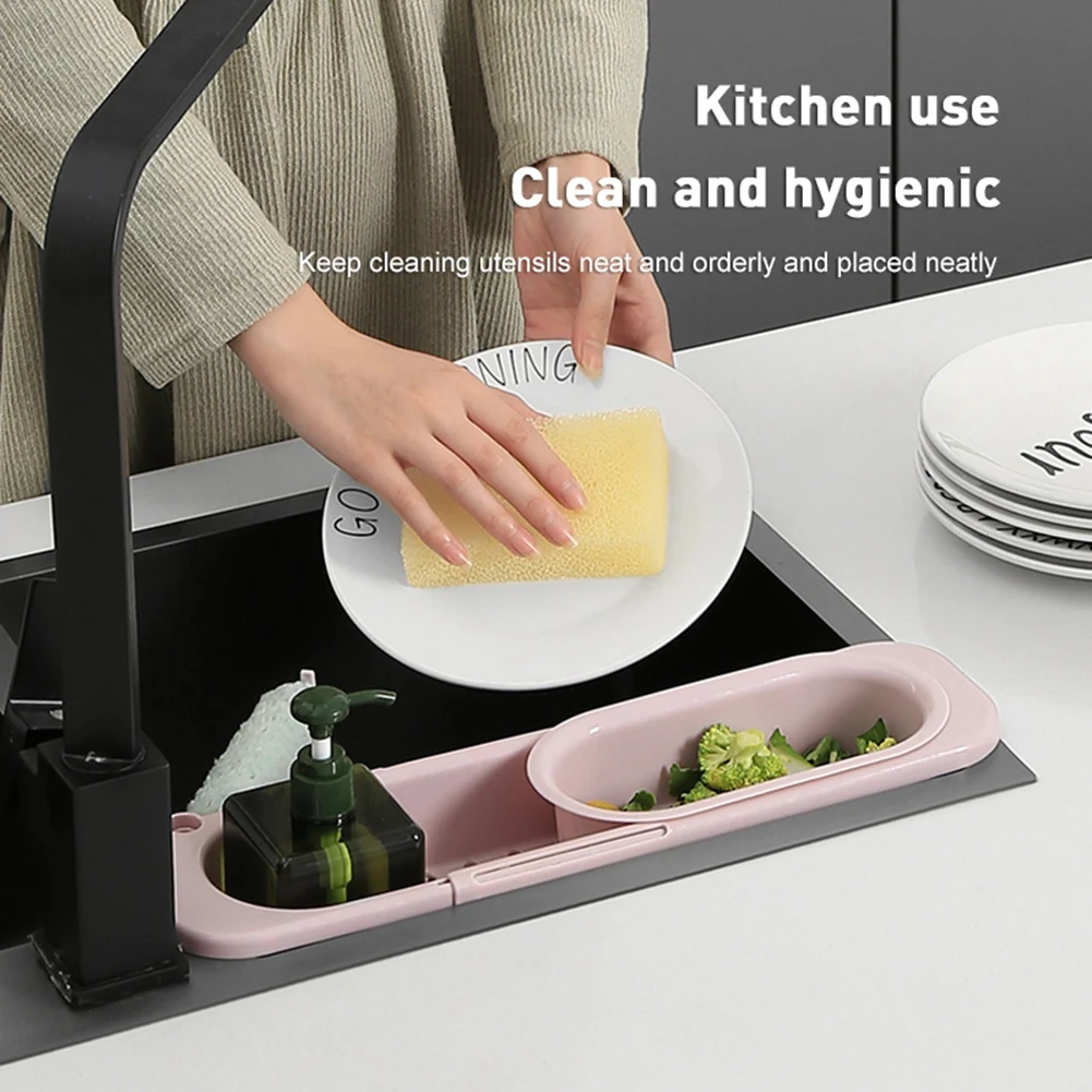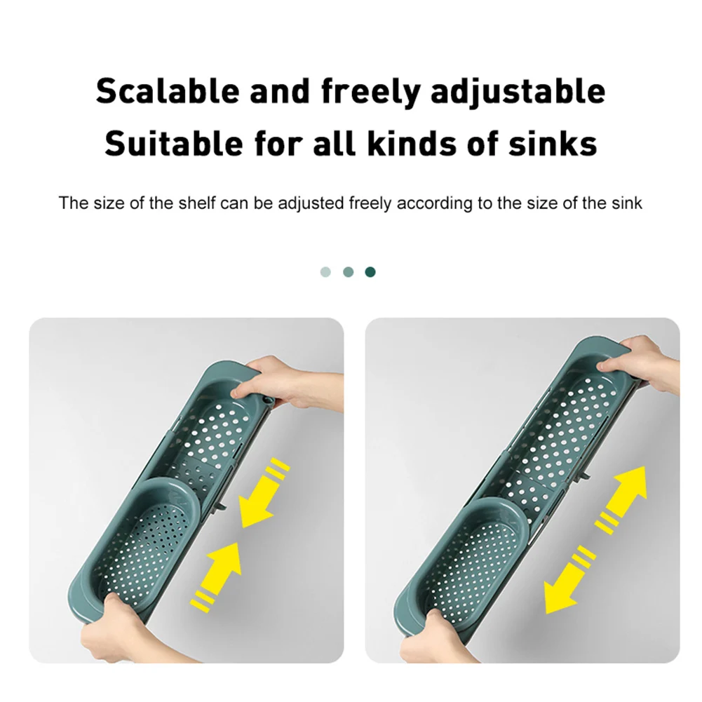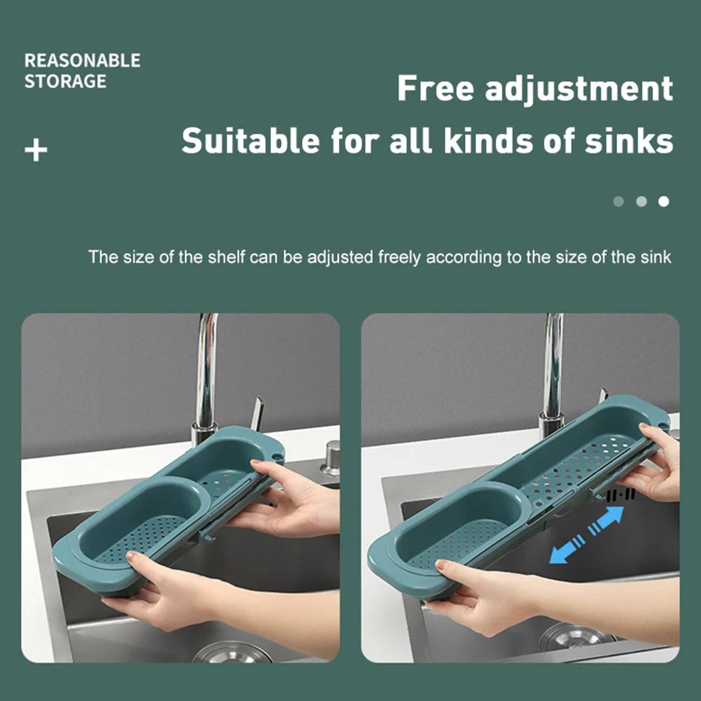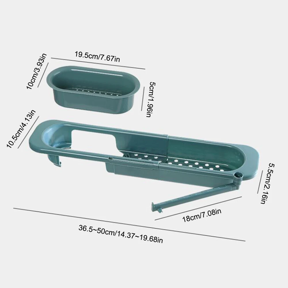 * 1. Телескопический держатель губки-его длина может быть отрегулировано между 36,5 см до 50 см, Ширина: 10,5 см глубина: 5,5 см, совместим с большинством кухонных раковин, никакие другие инструменты не требуются, просто поместите его выше раковины.