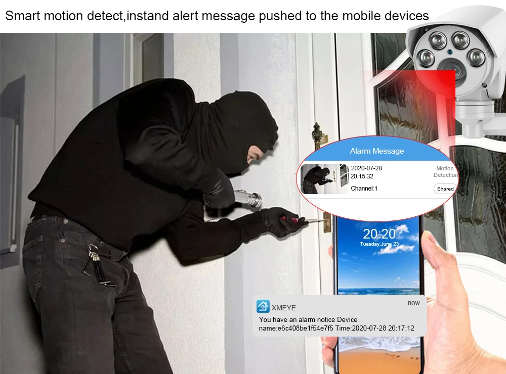 Эта PTZ камера предназначена для отправки оповещения по электронной почте при обнаружении любого движения и позволяет записывать только при обнаружении движения. Можно настроить область, которую вы хотите контролировать, когда она срабатывает, она отправит сообщение на вашу электронную почту, вы можете получить информацию из первых рук, независимо от того, где и когда вы находитесь.