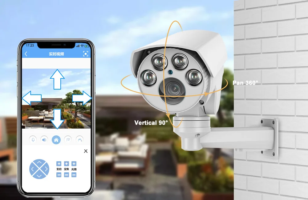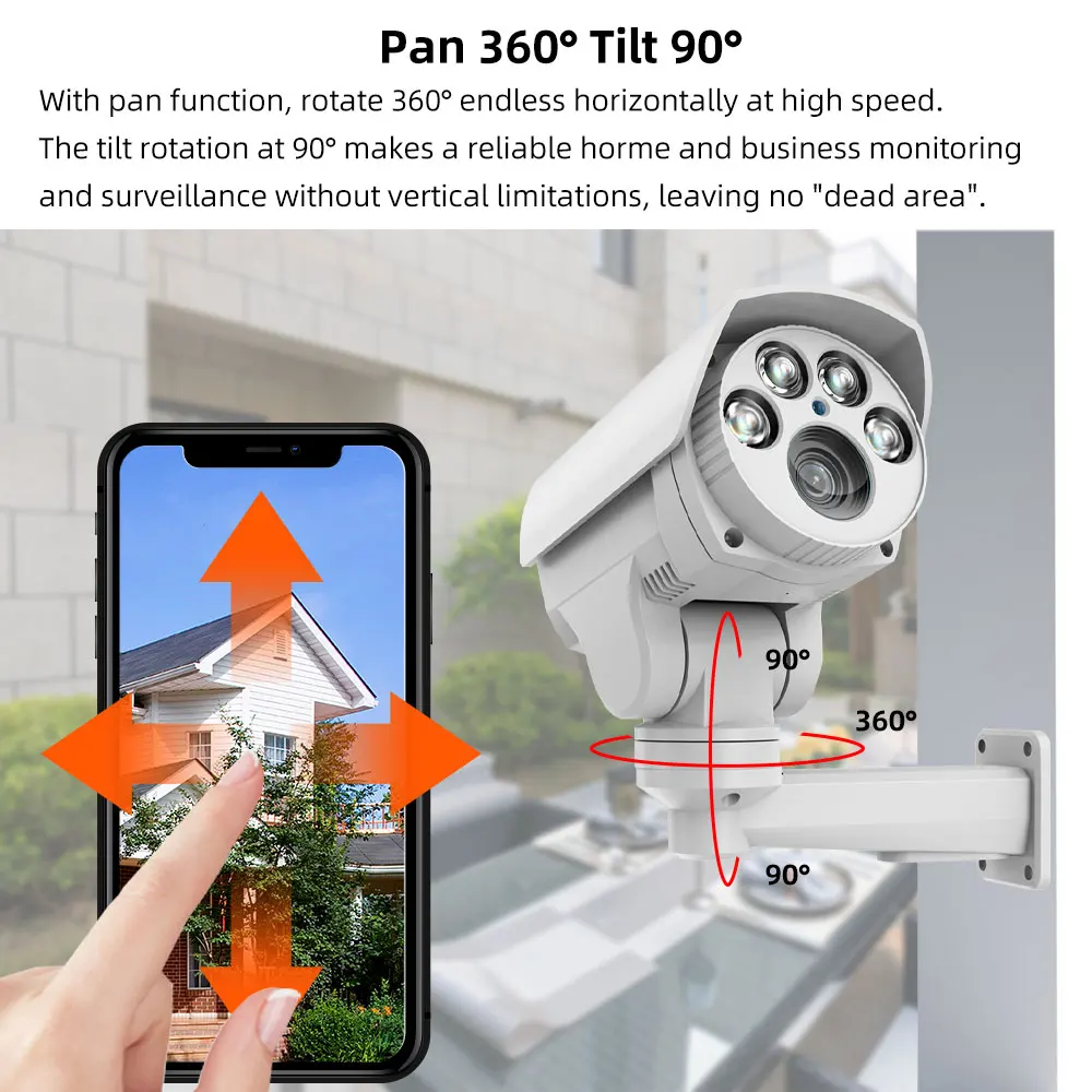 Горизонтальное вращение на 360 °, вертикальное на 90 °, управление углом вращения через приложение. Поддержка действия парка, настройки/шаблон/патруль/сканирование панорамирования могут автоматически вызваться после определенного времени бездействия