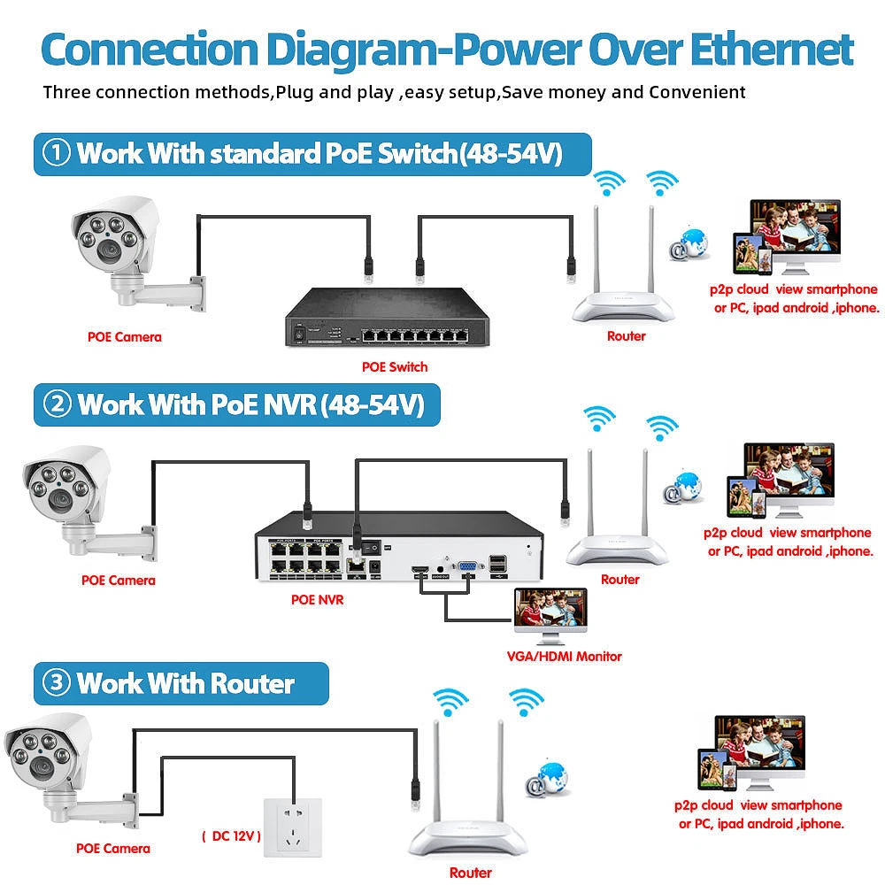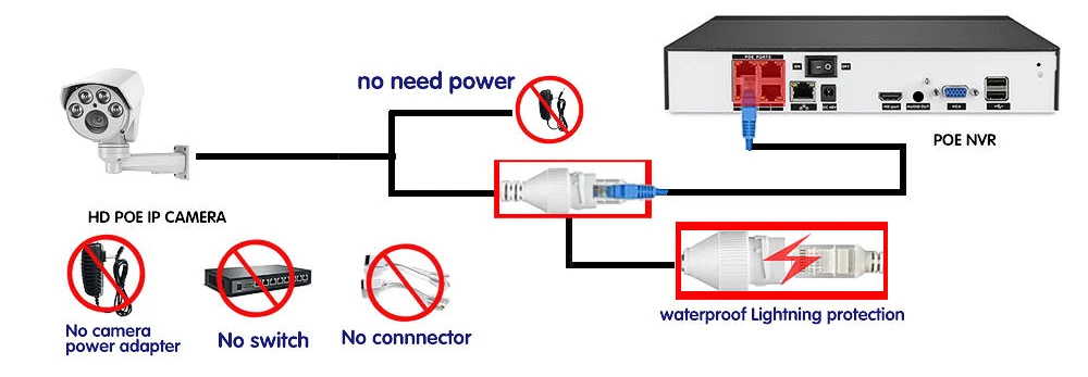 Никаких дополнительных силовых кабелей или адаптеров не требуется, просто подключив IP-камеру к сетевому видеорегистраторУ с помощью одного кабеля, вы можете легко завершить установку, не зная о компьютере или сети, и начать наслаждаться супер легким мониторингом среди вашего смартфона, планшета или ПК.