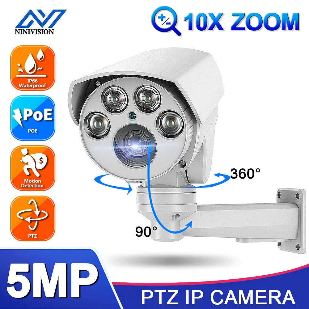 IP-камера NINIVISION, HD, PTZ, 10X оптический зум, 5 Мп, POE, с датчиком обнаружения людей, водонепроницаемая
