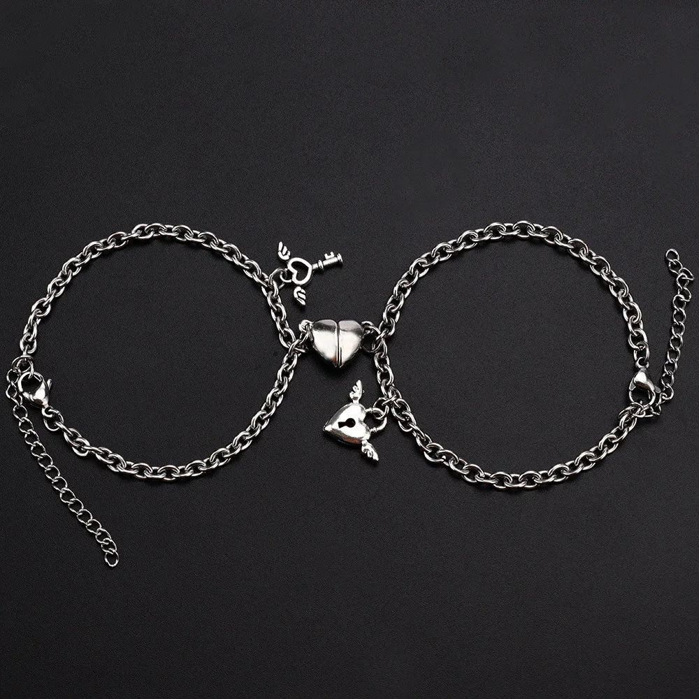 2 шт.компл., браслет в форме сердца, с магнитом, с замком для влюбл...