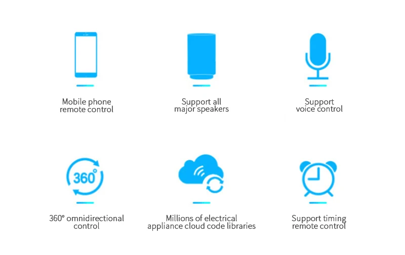 Поддерживает 50000 + ИК (только ИК 38 кГц, без RF) управляемых устройств, включая кондиционер, телевизор, ТВ-приставку, DVD, аудио, персональный видеорегистратор, ресивер и многое другое.