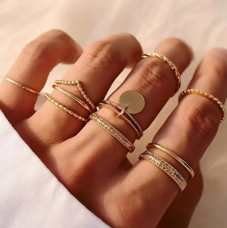 Богемный винтажный набор колец серебряного цвета, набор геометричес...