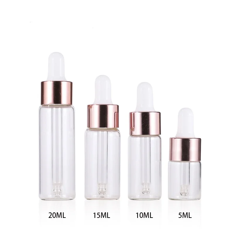 Прозрачная стеклянная бутылка-капельница для эфирных масел, 50 шт.лот, 5 мл, 10 мл, 15 мл, 20 мл, флакон с индикатором эфирного масла, сыворотка, образец парфюма, косметический контейнер для тестирования