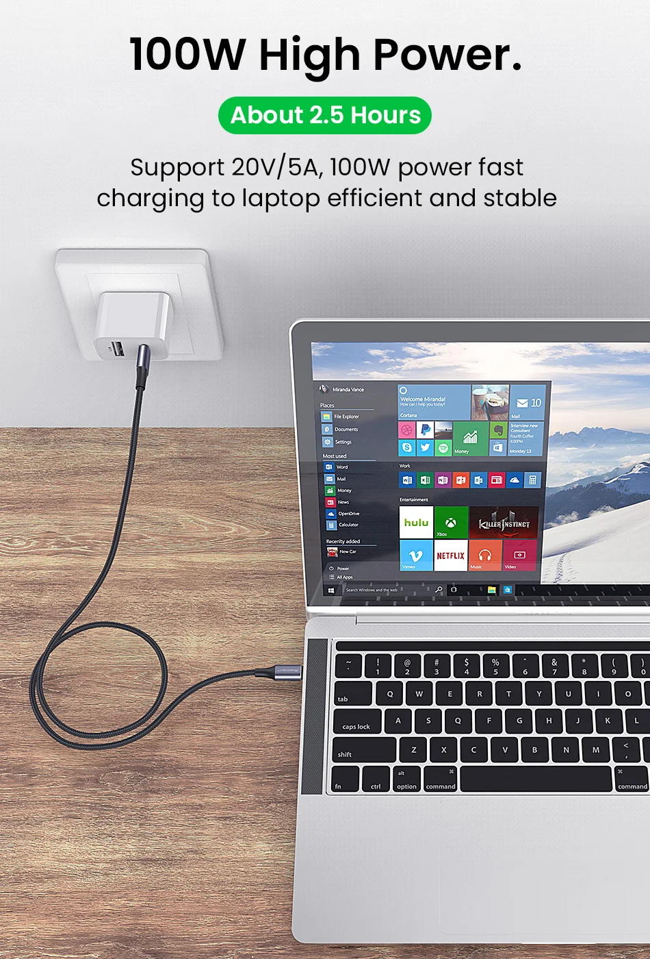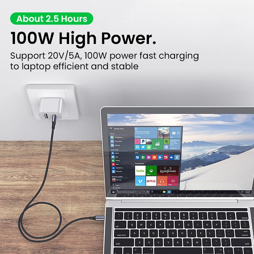 PD 100 Вт60 Вт Быстрая зарядка USB Тип C к USB C кабелю QC4.0 колен...