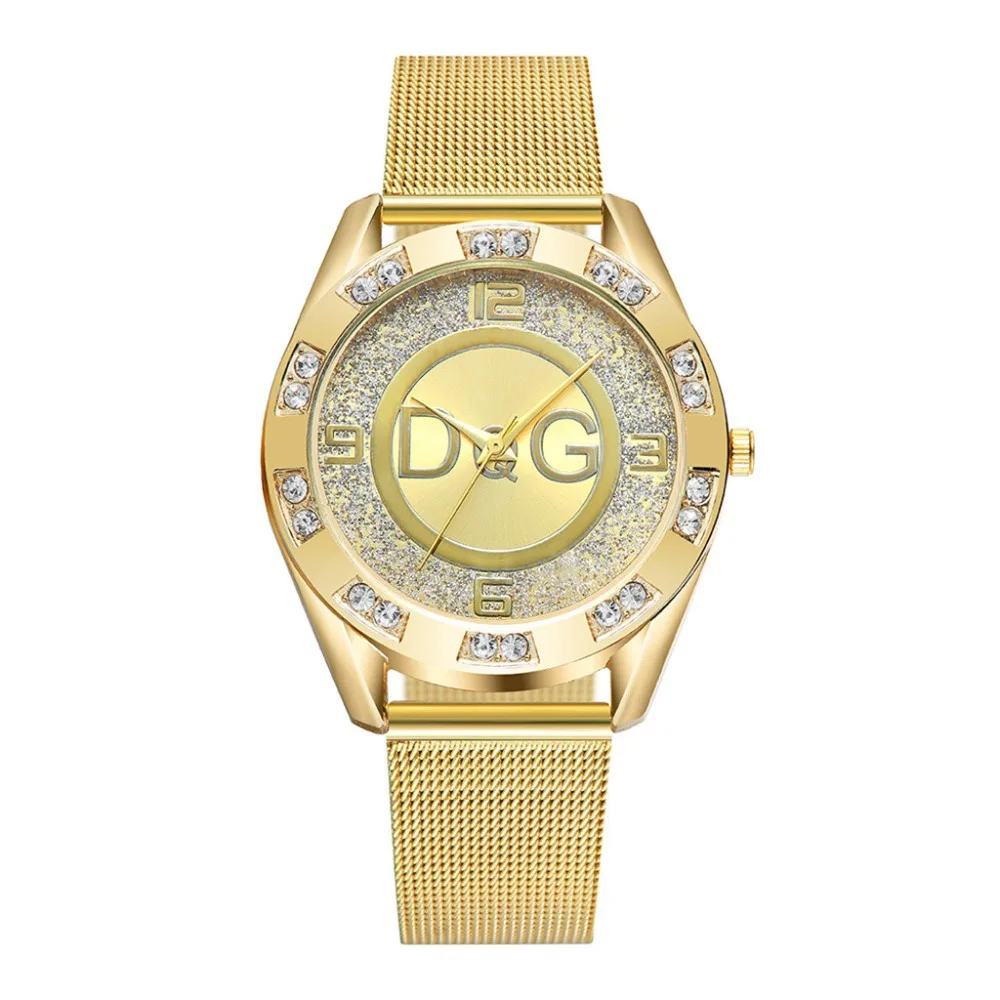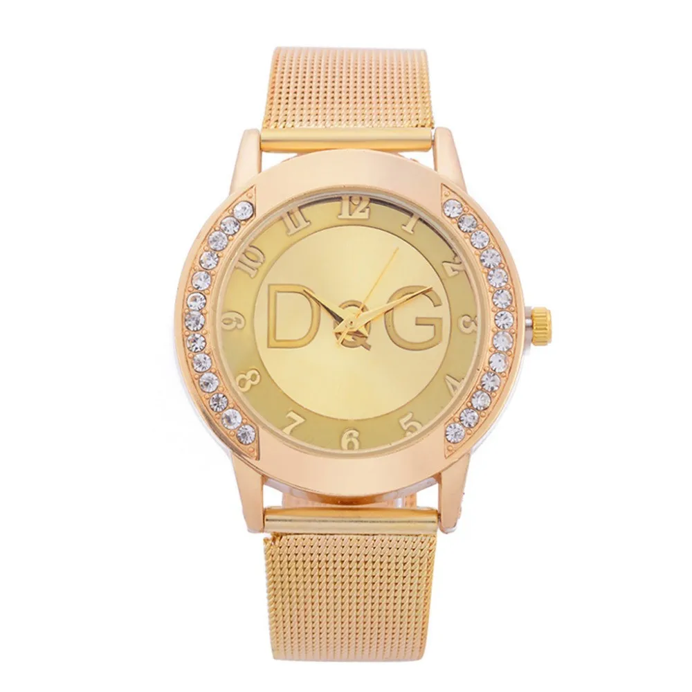 Золотые Роскошные модные женские часы DQG бренд из нержавеющей стал...
