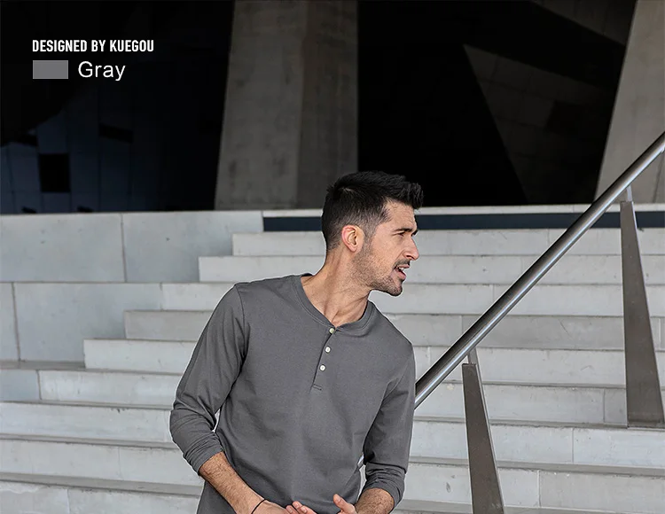 Мужская футболка с длинным рукавом KUEGOU, цвета хаки футболка с дл...