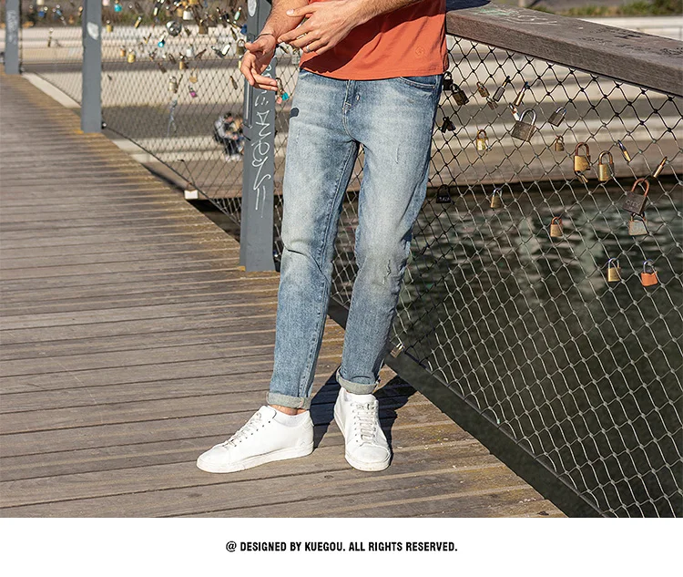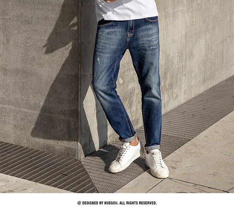 KUEGOU хлопчатобумажная одежда мужские рубашки стильное джинсовое п...