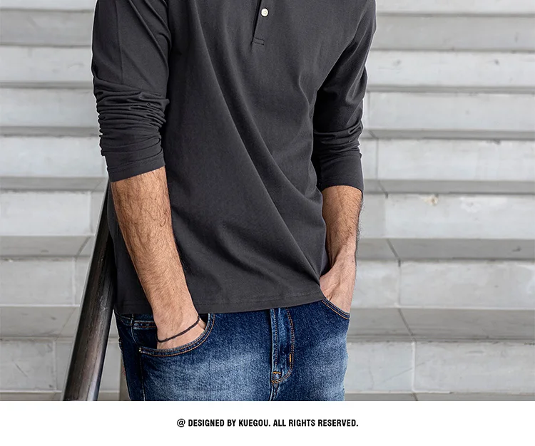 Мужская Однотонная рубашка-поло KUEGOU, черная приталенная рубашка-...