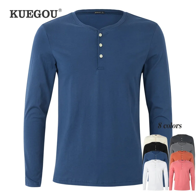 KUEGOU 100% хлопковая футболка полукардиган Мужская футболка лето В...