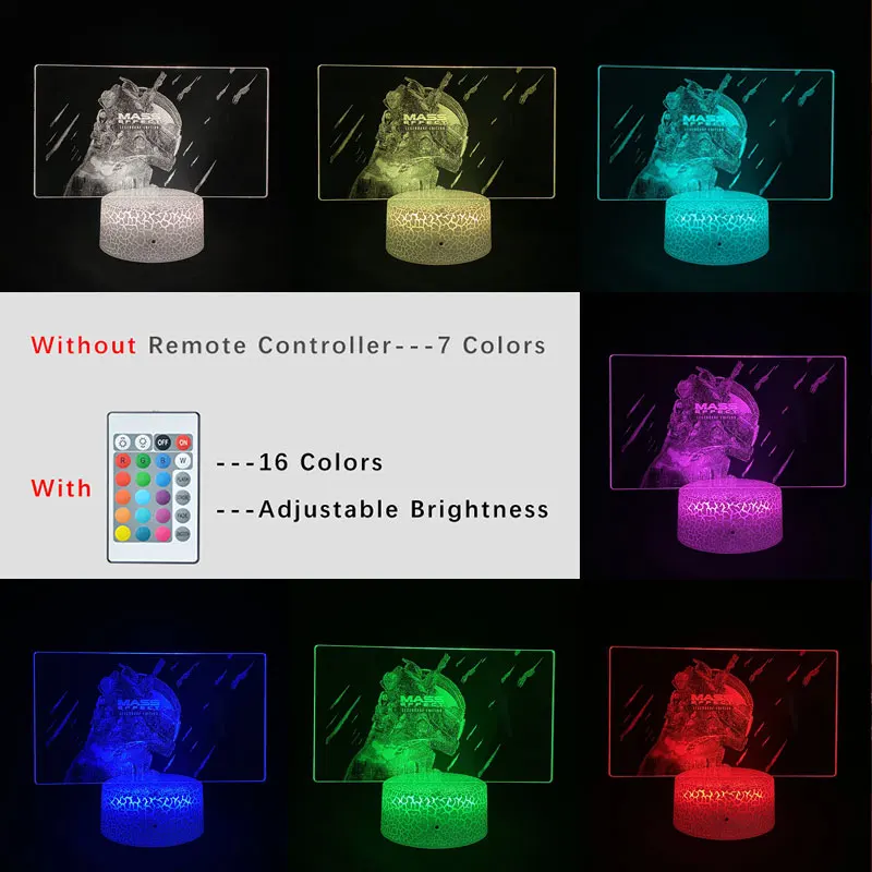 Лампа с 3D изображением MASS EFFECT, управление смартфоном, 16 цветов, атмосфера для вечеринок, прикроватная лампа для спальни, подарок для друзей и фанатов