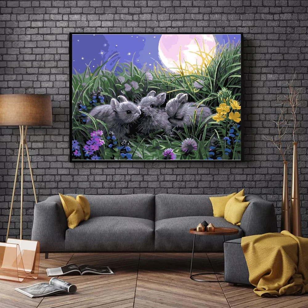 Алмазная живопись, тема кролика, 5D вышивка, вышивка крестиком, алмазная живопись, вышивка животными, украшение дома, сделай сам