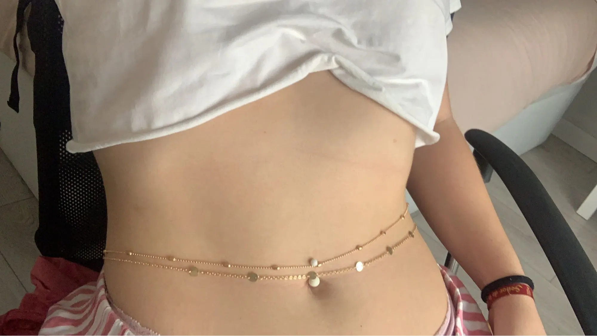 Из новинок этого сезона я купила цепочку на талию. Лето пока погодой не радует, но, надеюсь, это ненадолго. Украшение двойное, состоит из двух отдельных цепочек разного дизайна. Есть масса вариантов. Я выбрала тонкие цепочки с миниатюрными декоративными элементами, чтобы смотрелось аккуратно. На ОТ 75 цепочка как раз застегнулась, но на каждой цепочке есть добавочная сантиметров 20, так что подойдет на любую фигуру. Смотрится интересно, необычно, удобная. Классно сочетать с кроп-топами.