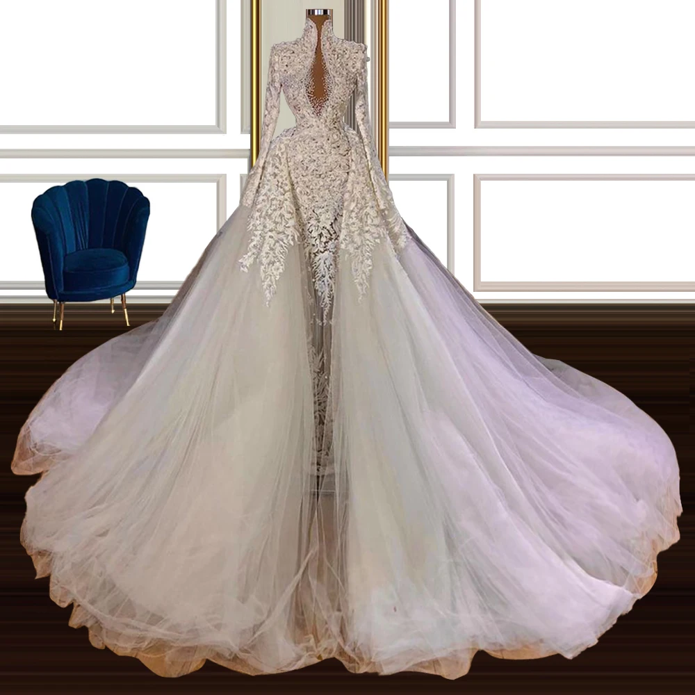 2022 Роскошные свадебные платья с бисером и длинным рукавом с длинн...