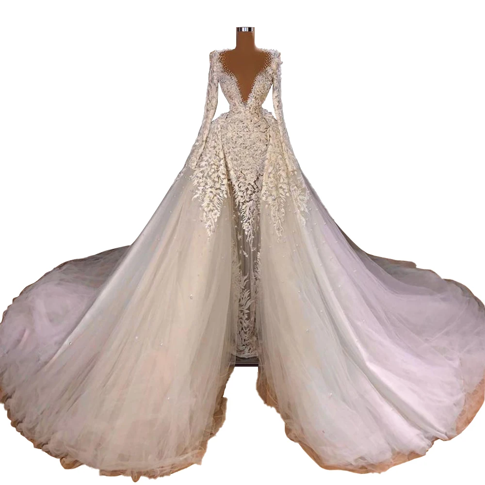 Роскошное Свадебное платье, свадебные платья со съемным шлейфом, 2022, кружевные бальные платья с V-образным вырезом, свадебные наряды на заказ, большие размеры