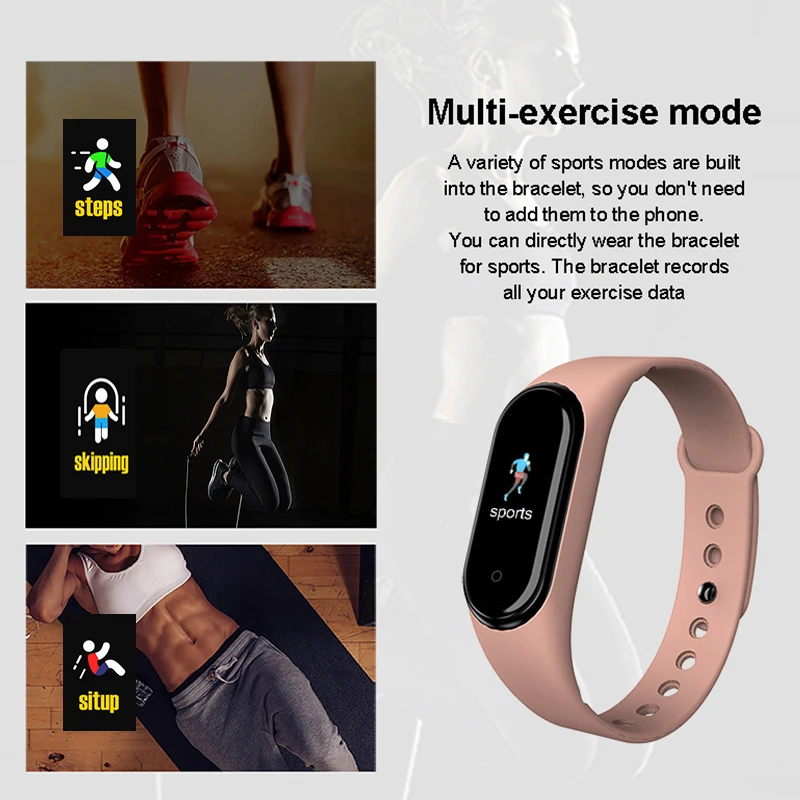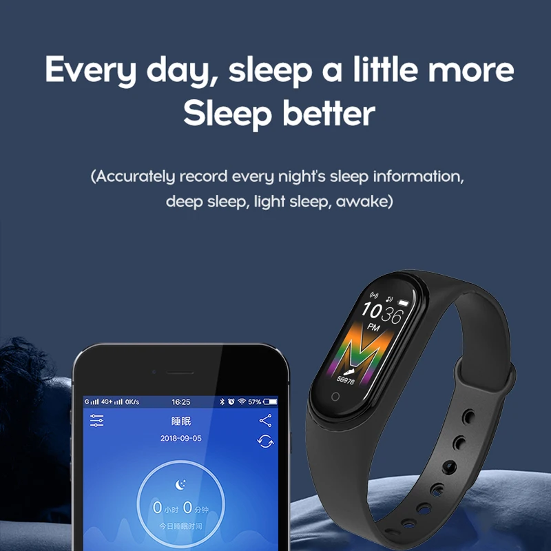 Характеристики Товара: Модель продукта: умный Браслет M5 Уровень водонепроницаемости: степень водонепроницаемости IP68 Совместимые системы: Android 4,4 и выше, iOS 8,0 и выше Особенности: пульс, артериальное давление, кислород в крови Экран: HD 0,96 дюймовый цветной экран, Тип экрана: TFT Bluetooth: 4,0 BLE (низкое энергопотребление) Тип батареи: полимерный литиевый аккумулятор Емкость аккумулятора: 100 мАч Способ зарядки: специальный USB-кабель для зарядки Время зарядки: около 2 часов Срок службы: 5-10 дней, 20-30 дней в режиме ожидания (в зависимости от частоты использования и частоты нажатия) Данные для хранения браслетов исторические данные сохраняются в течение 7 дней; 7 дней и более данных сохраняются в приложении Метод управления: одно касание Внешний вид материал передний чехол: PC, задний Чехол: ABS + PC, ремешок на запястье: экологически чистый TPE Функция: Уведомления: SMS, звонки, WeChat, QQ и т. д. Часы: 24 часа Шагомер: записывает шаги и расстояние Монитор качества сна Будильник