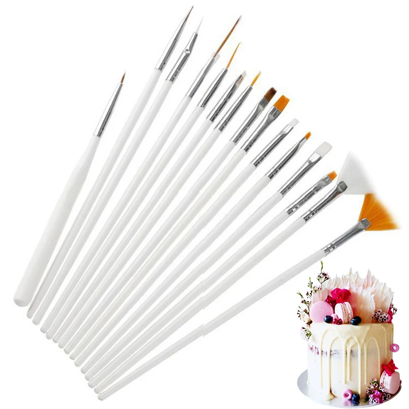 15 шт. украшения торта инструменты для выпечки Многофункциональный Обледенение Кондитерские кисти Fondant (сахарная) торт кисть для рисования дизайн ногтей, ручка с кисточкой