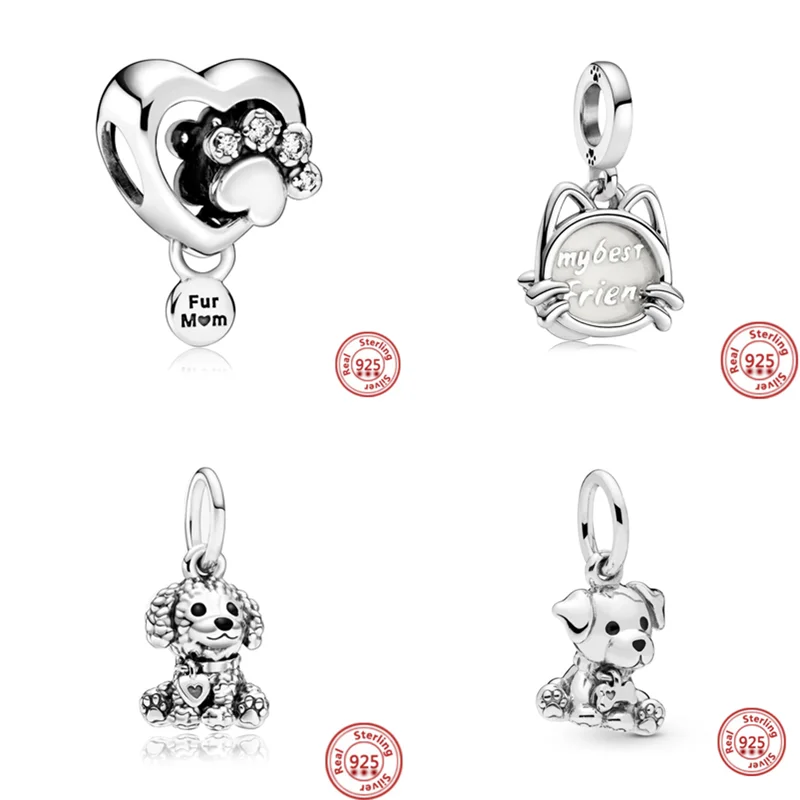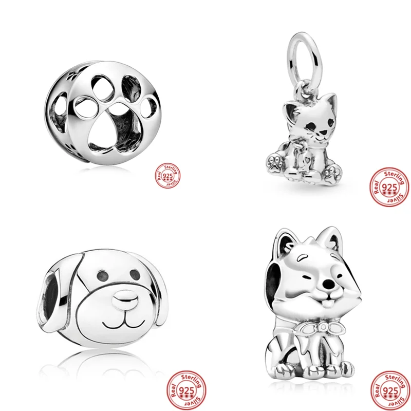 Новинка, Настоящее серебро 925 пробы, милая кошачья собачья лапа, бисер с принтом подвеска, подходит для оригинального браслета Pandora, Модные женские ювелирные изделия сделай сам