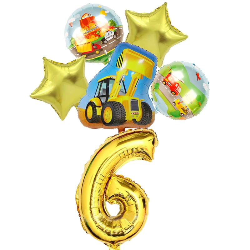 Строительство экскаватор транспортного средства латекса воздушный шар Globos баннер торт Топпер для фон с темой С Днем Рождения вечерние украшения Дети сувениры