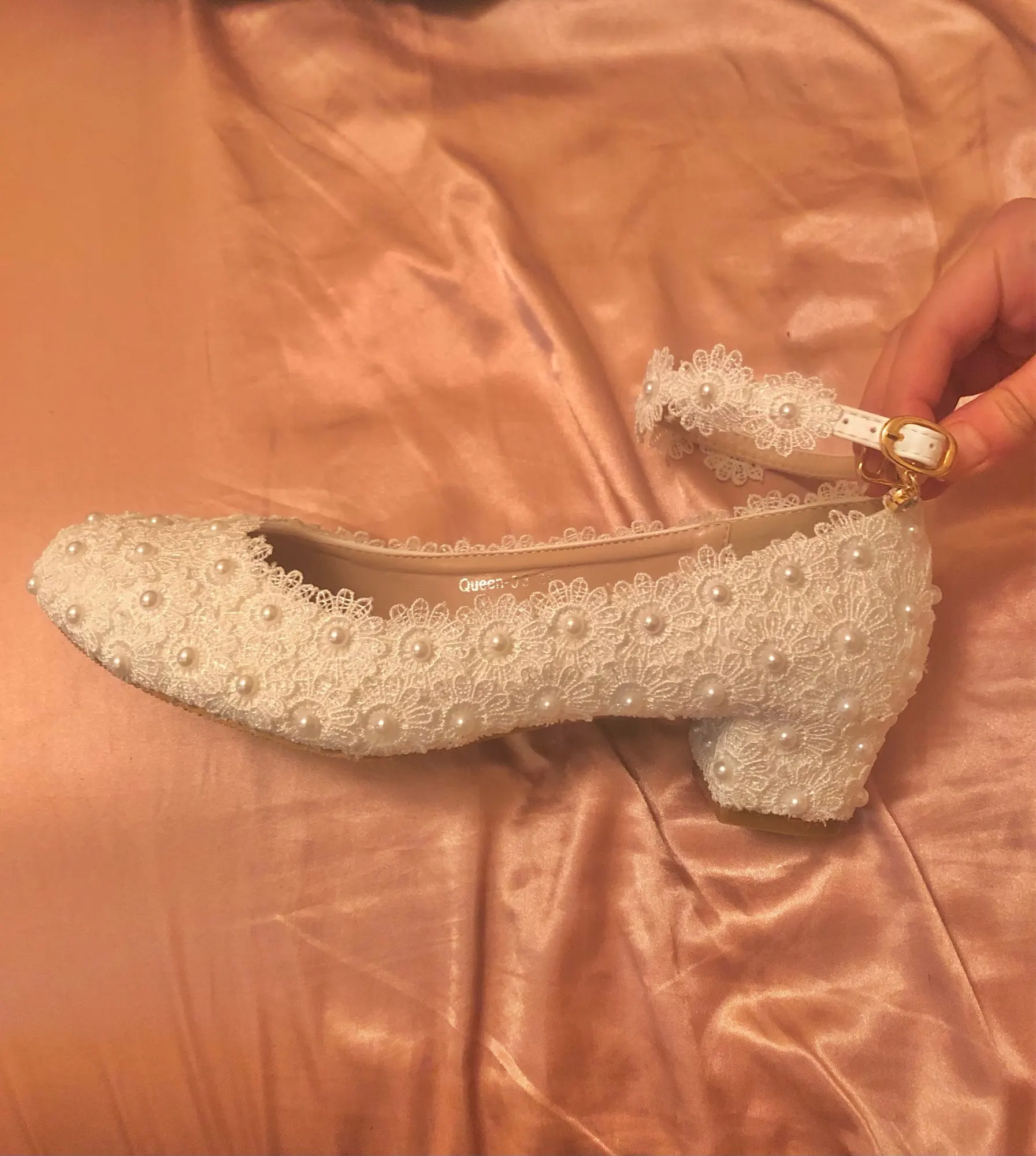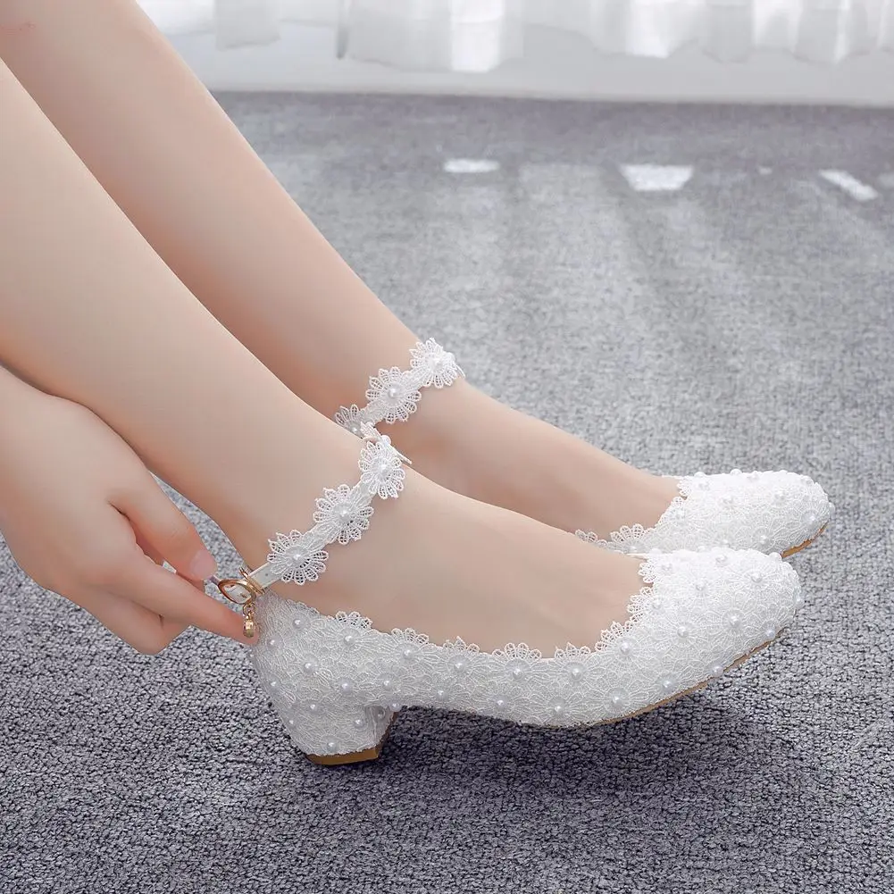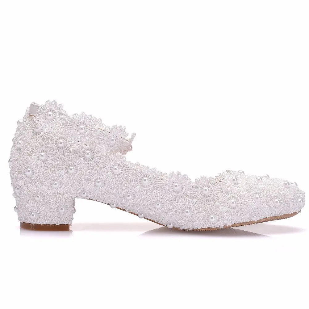 Женские свадебные туфли, свадебные туфли, банкетные белые кружевные туфли подружки невесты с круглым носком, на высоком квадратном каблуке, женские свадебные туфли H0083