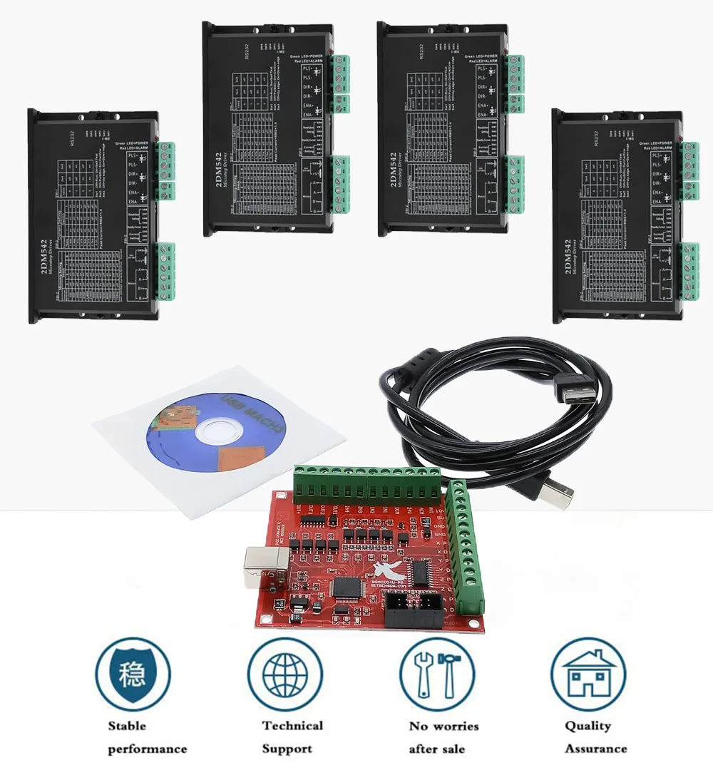 Комплект систем управления с ЧПУ, 1 * Красная коммутационная Плата USB MACH3 100 кГц, 4-осевой интерфейс, драйвер управления движением + 4*2DM542