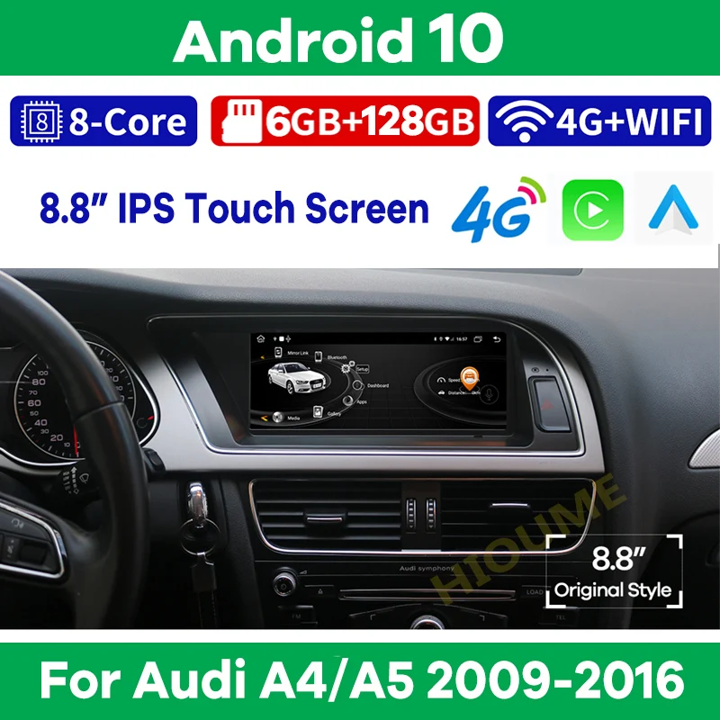 Автомобильный мультимедийный плеер, стерео-система на Android 10, с GPS, Wi-Fi, 8,8 дюйма, для Audi A4, A4L, A5, 2009-2016