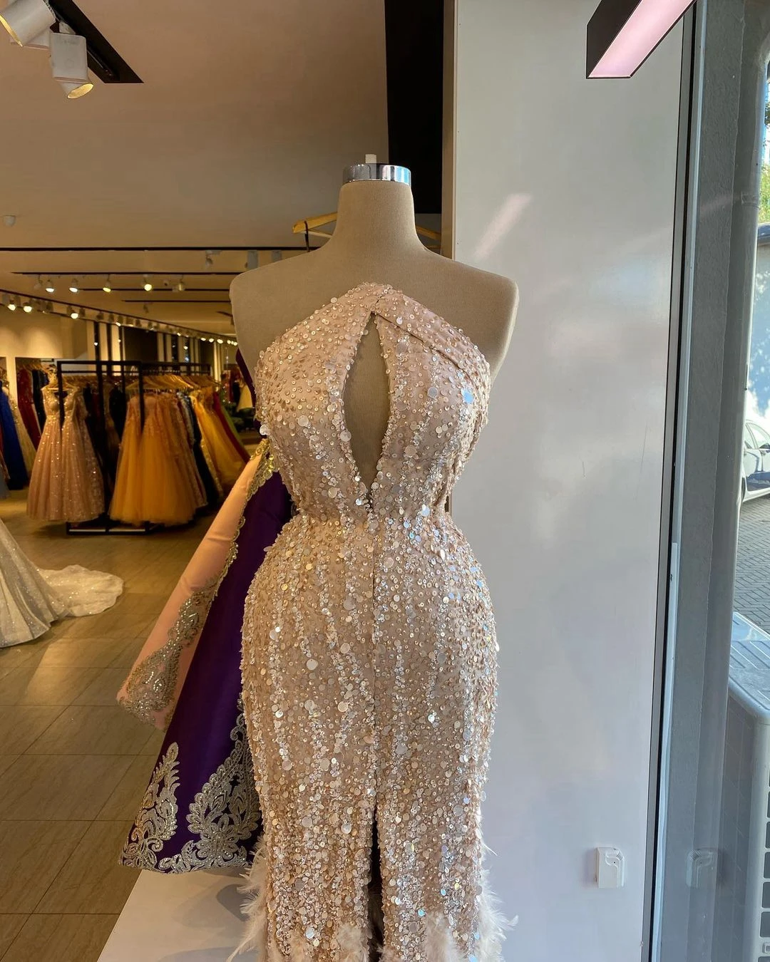Роскошное длинное платье-Русалка для выпускного вечера с золотыми ц...