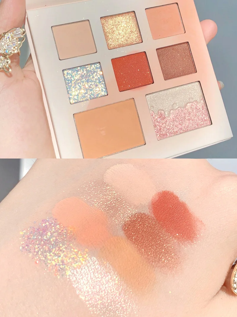 Молочный чай, 8 цветов, палитра теней для век, Блестящий мерцающий матовый, легко окрашивать, рисовать, деликатный, яркий, TSLM2