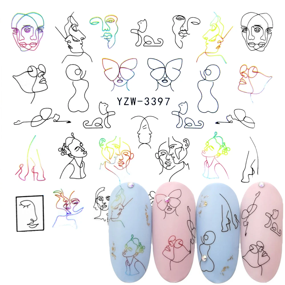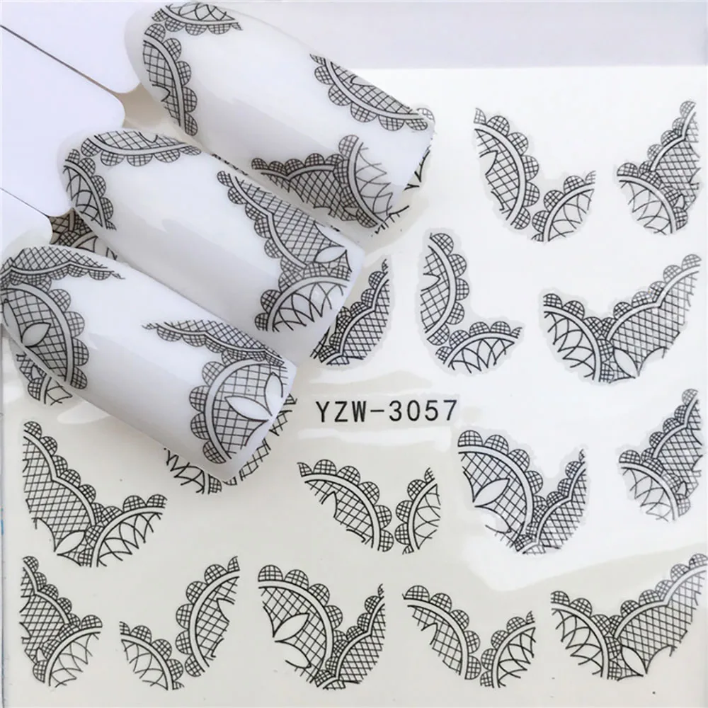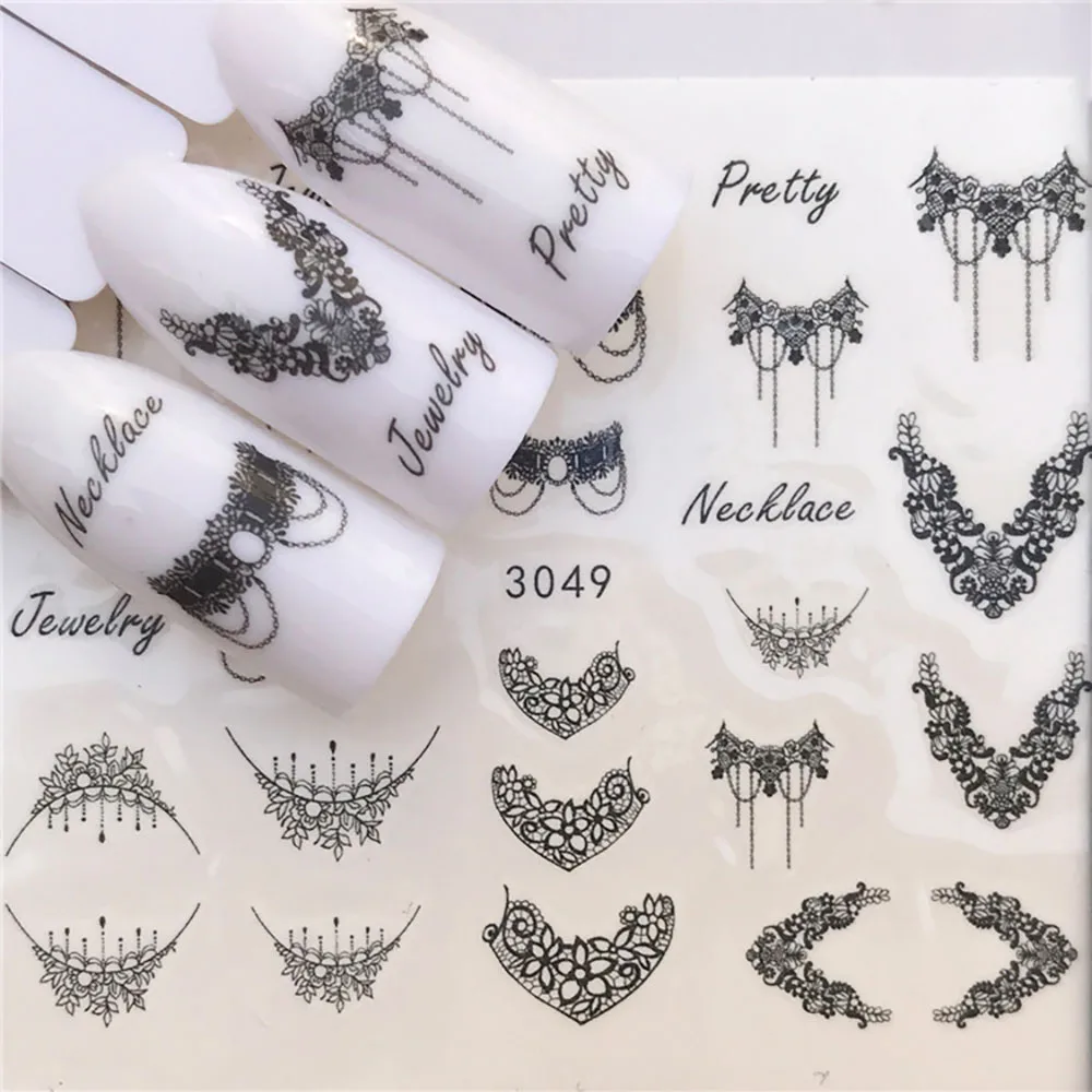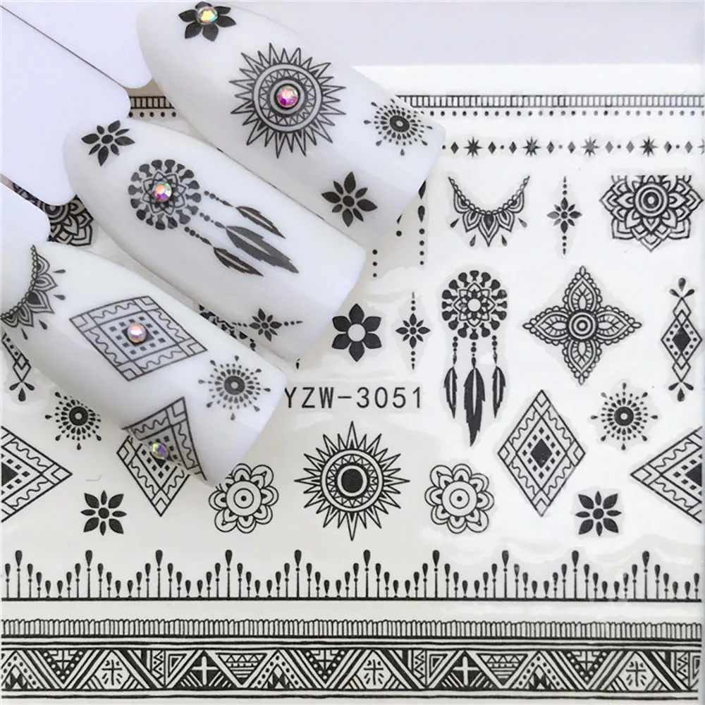 Маникюр наклейки Черный Цветок Наклейка для ногтей с персонажем мультфильма Водные Наклейки 3d наклейки цветы украшение искусство Кот наклейки для ногтей для маникюра