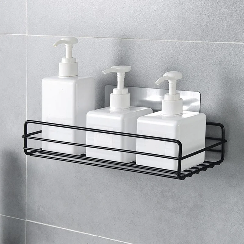 Просто Наклейте прозрачный клей на стену и Повесьте ванную полку на крючки, без сверления, вам не придется повредить стену и легко удалить их без следов.