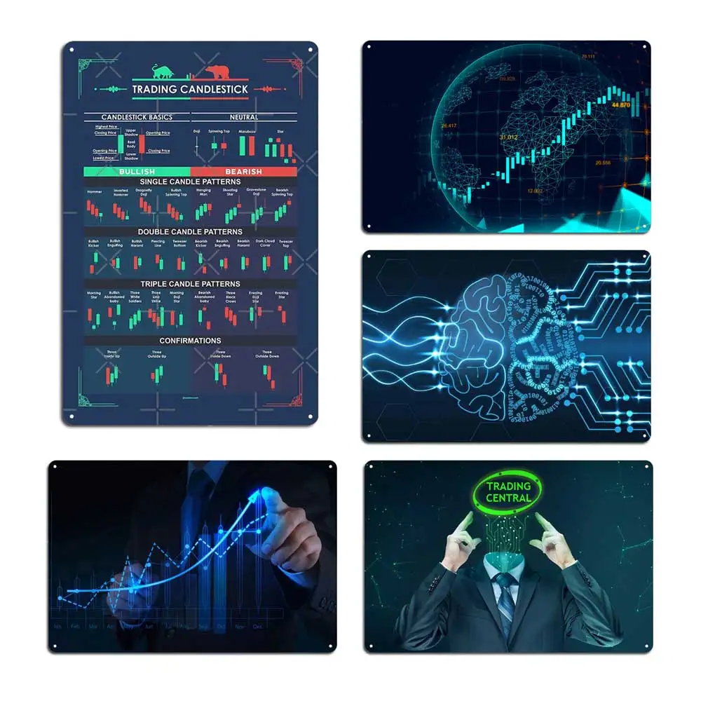 Настенная роспись, металлические подсвечники для трейдеров, забавные жестяные плакаты