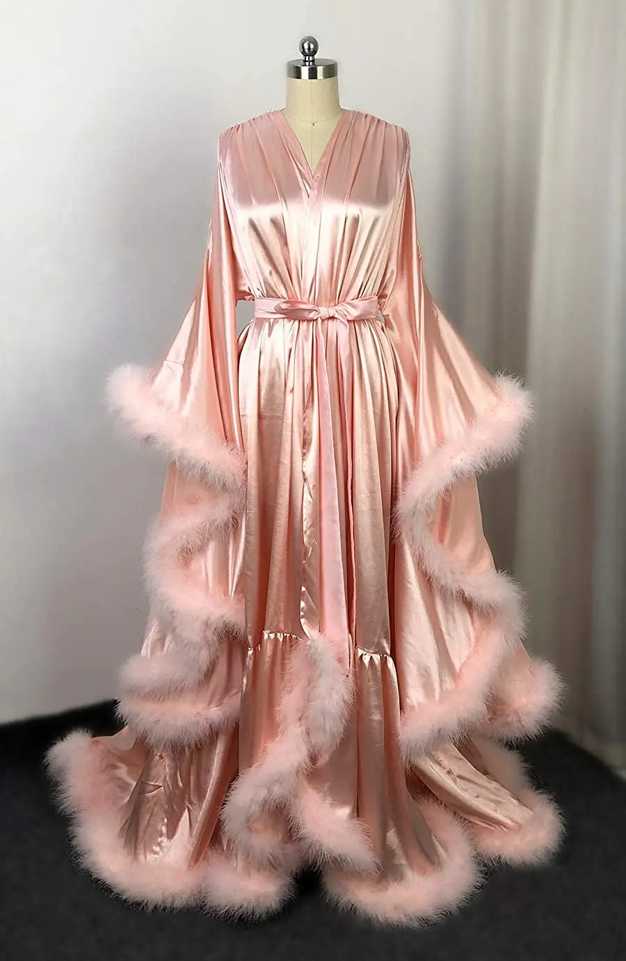 Шелковый Свадебный халат, Женский банный халат с перьями, на пуговицах, с длинным рукавом, свадебная ночная рубашка