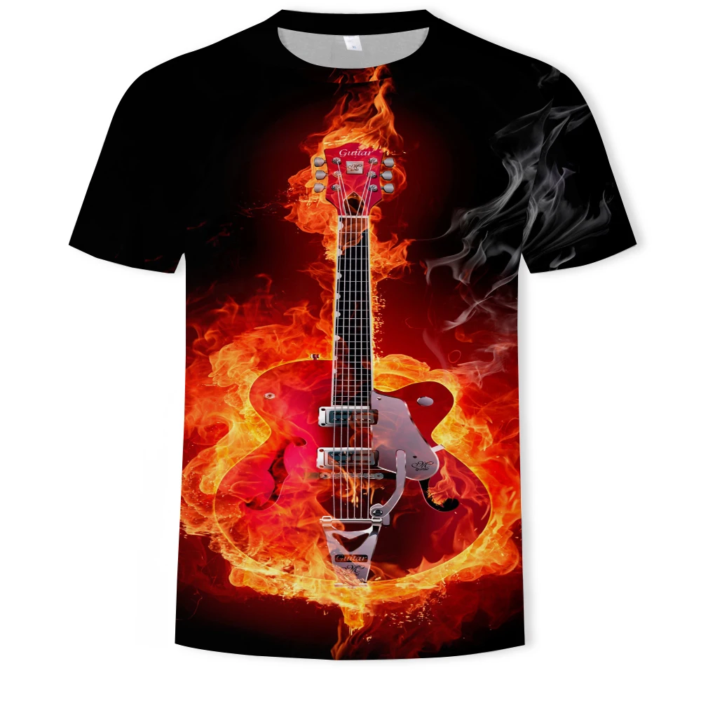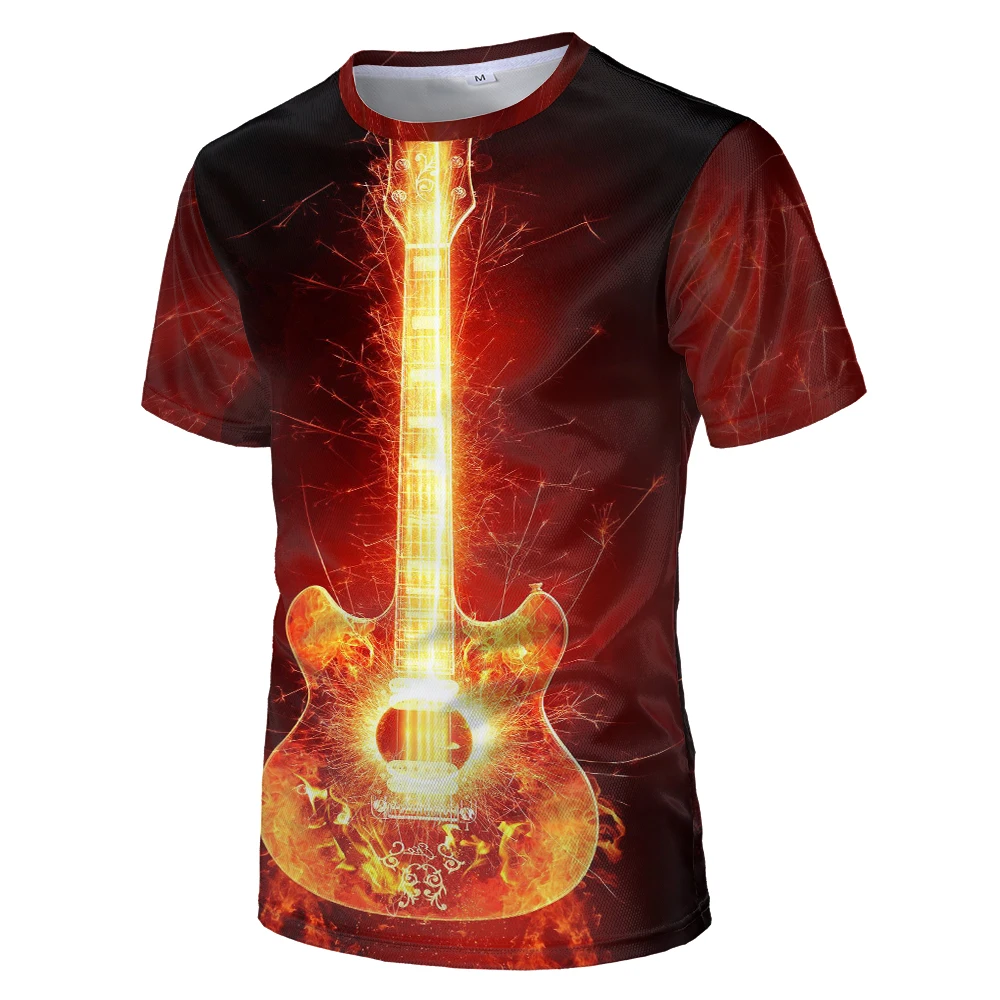 Лето 2021 мужские 3D с принтом на музыкальную темугитары узор футболка с коротким рукавом для мамы, удобная, модная, свободная, спортивная одежда с короткими рукавами xxs-6xl