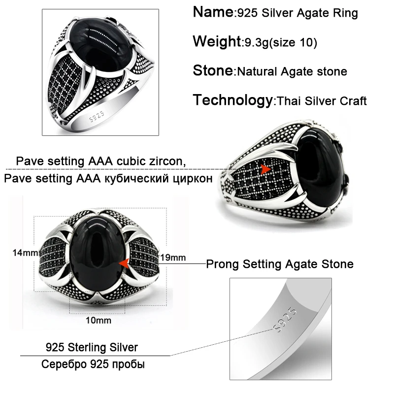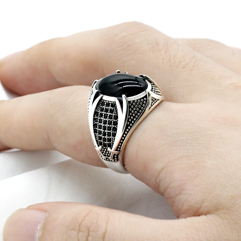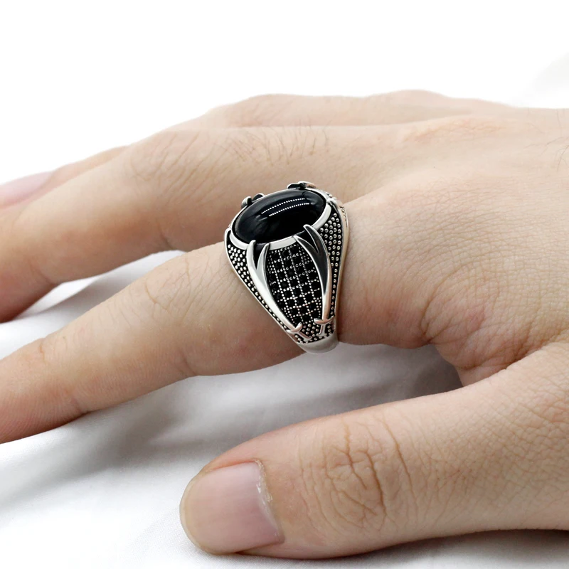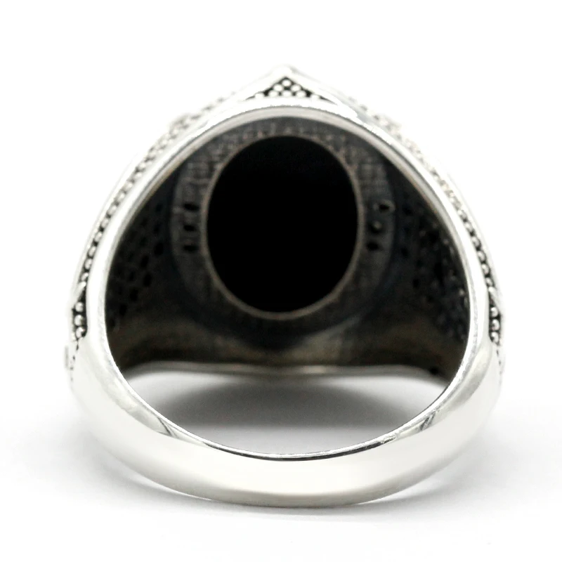 925 пробы Серебряное исламское мужское кольцо с натуральным черным агатом, двойные мечи, винтажное мужское кольцо, религиозная Подарочная бижутерия