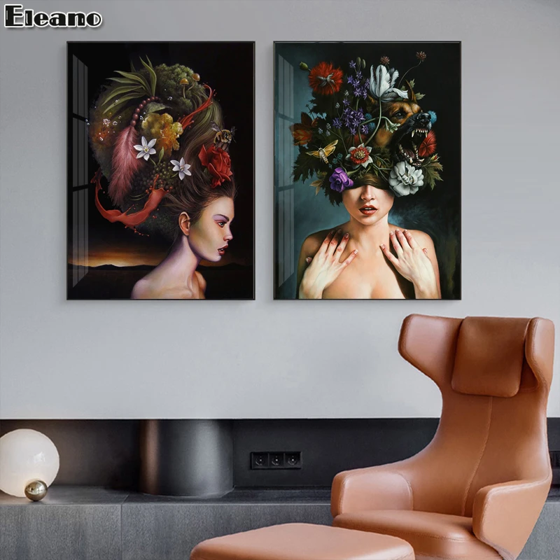 Абстрактная Картина на холсте с изображением пчелы на голове сексуальной женщины и мужчины, украшение для гостиной, настенные картины, Постер в скандинавском стиле, Декор