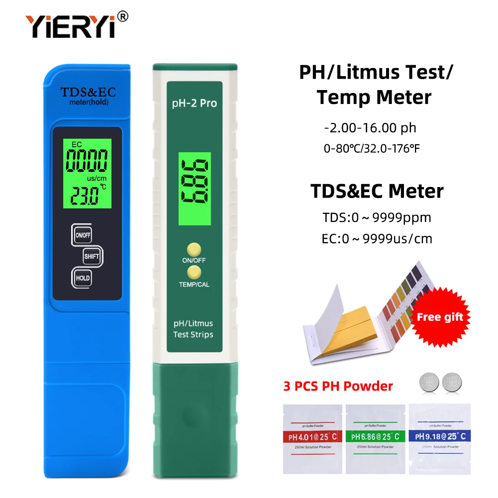 2 * pH метр (батарейки в комплект не входят)3 * пакеты буферный порошок1 * Руководство по эксплуатации1 * pH тестовая бумага