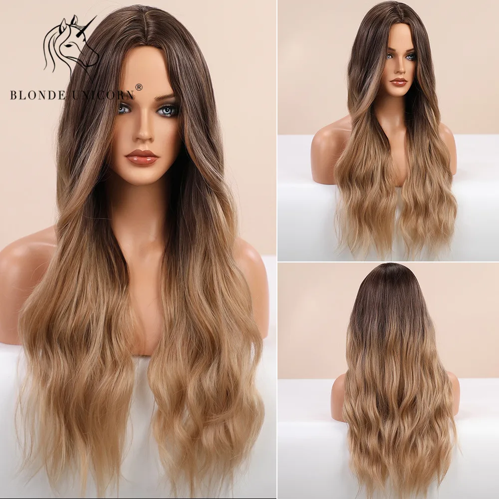 Блонд Единорог Омбре длинные волнистые светлые блонд синтетический парик для белых черных женщин ежедневные вечеринки высокая плотность волосы из волокна