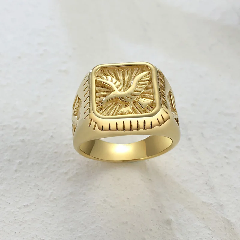 Печатка Белоголовый Орел для мужчин позолоченная птица Кольца Птицы нержавеющая сталь Hawk Band ювелирные изделия